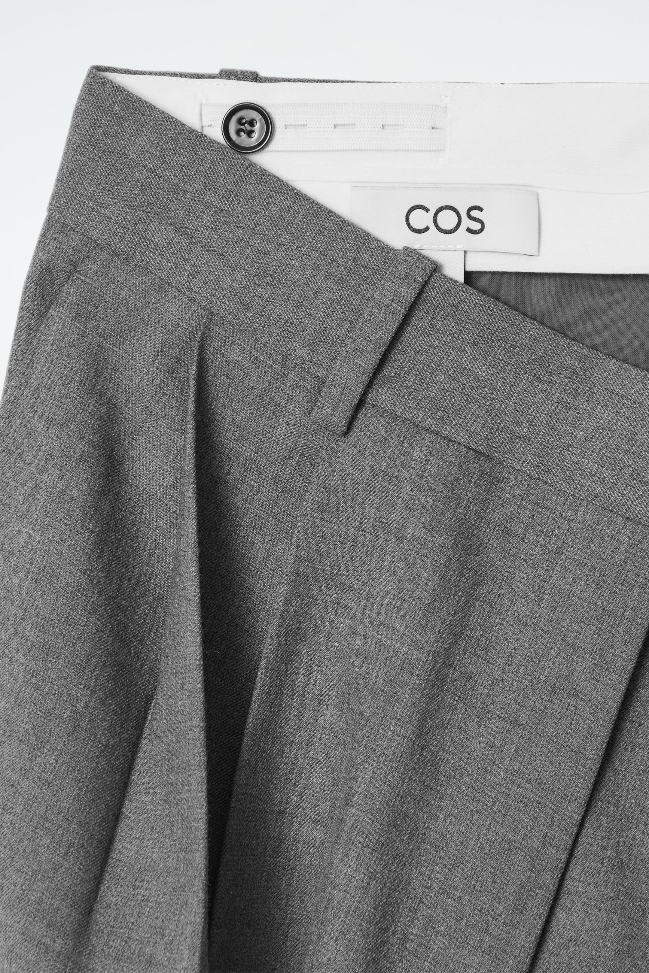 These trousers are a cornerstone of the COS womenswear collection. Crafted from lightweight wool-blend twill, they're tailored in a relaxed shape with sharp front pleats and loose, wide legs. Experiment with the fit using the adjustable tab inside the waistband.
