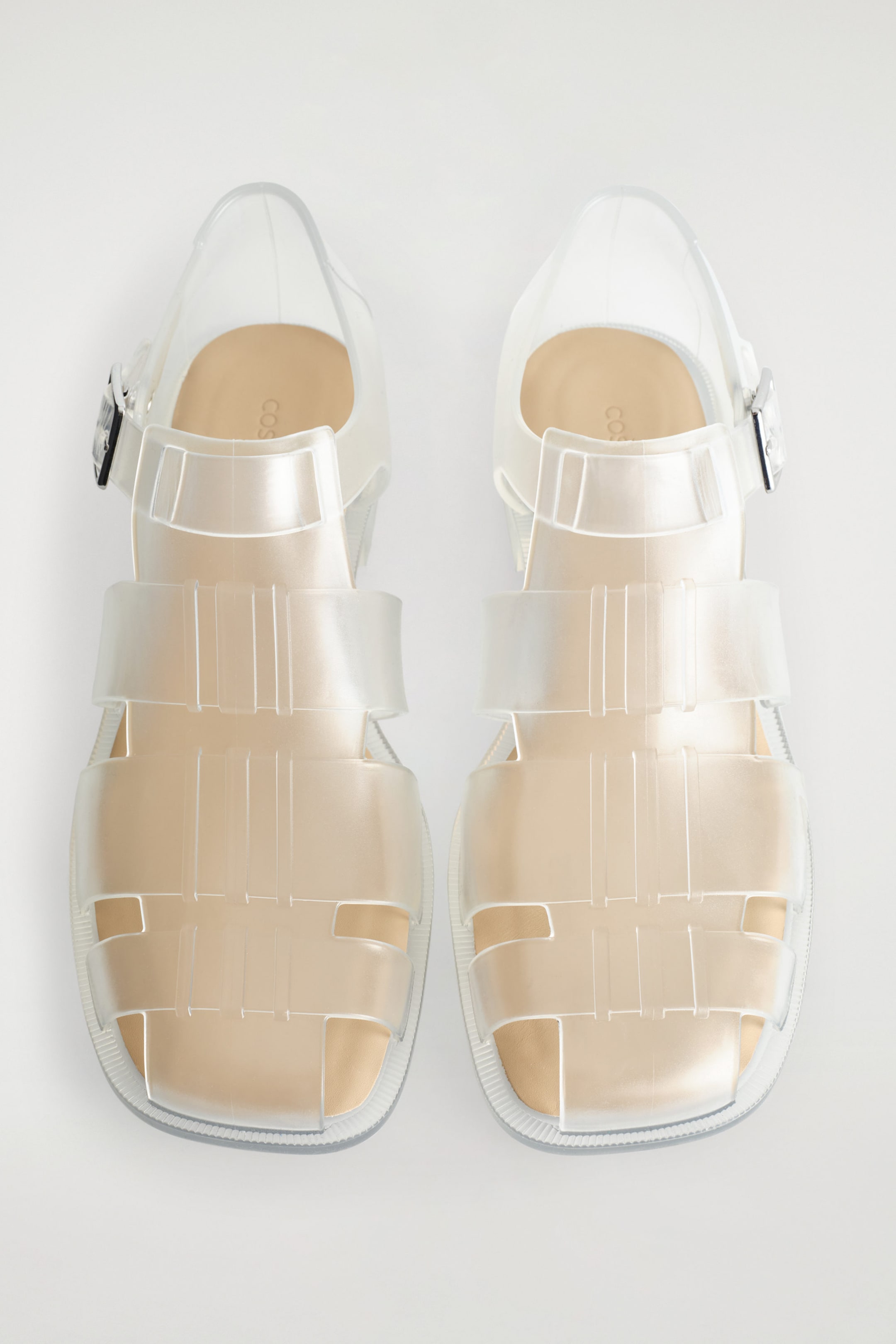 Ofreciendo una versión renovada de un clásico, estas cangrejeras de goma presentan un diseño entrelazado con puntera semicerrada y redondeada. Cuentan con suelas de piel flexible para mayor comodidad y se cierran con una hebilla plateada.