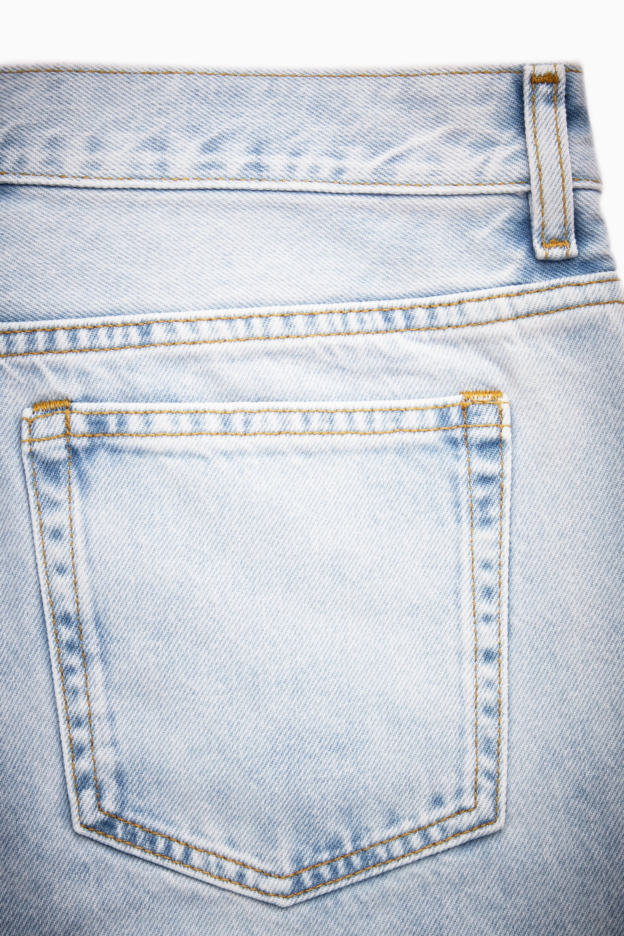 Reprenant la coupe COS classique, ce jean est fabriqué dans un denim de coton recyclé non extensible de 12 oz et présente des surpiqûres légèrement contrastées. Sa coupe mi-haute se porte juste en dessous de la taille et s'affine subtilement au niveau des chevilles. Afin de préserver son coloris bleu clair, préférez un nettoyage ponctuel au lavage en machine. Coupe regular, jambe fuselée, taille mi-haute, pleine longueurBraguette boutonnée, modèle à 5 pochesNotre coton biologique est produit à partir de graines non modifiées génétiquement sans engrais ni pesticides chimiques. Tissu : 80 % Coton biologique, 20 % Coton recyclé. Excluant les finitions / Lavable en machine La longueur de l'entrejambe en taille 32 est de 77,5 cm / Le mannequin porte la taille 32