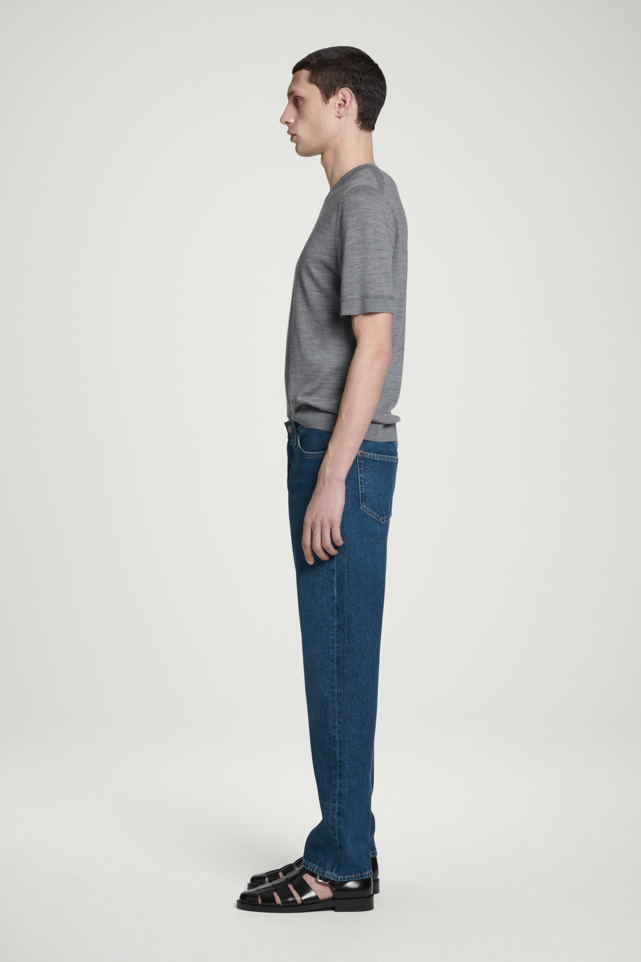 De coupe droite intemporelle, le jean Signature est confectionné dans un denim de coton biologique de 12,5 oz teint dans un bleu foncé délavé classique. Préférez un nettoyage ponctuel au lavage en machine afin de conserver sa couleur d'origine. Note de style : il se porte avec tout, mais il n'y a pas de combinaison plus parfaite qu'un t-shirt blanc et la veste assortie.