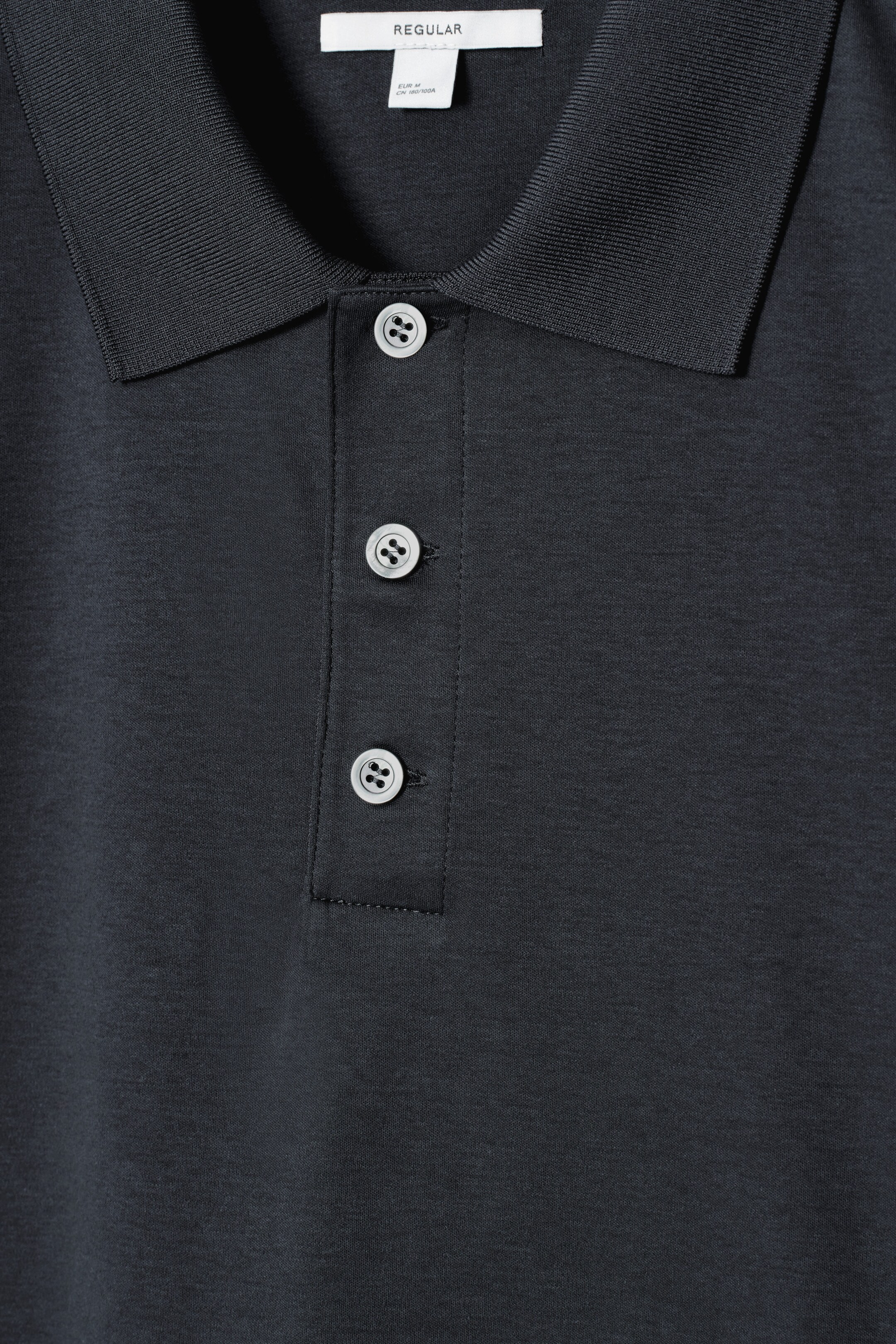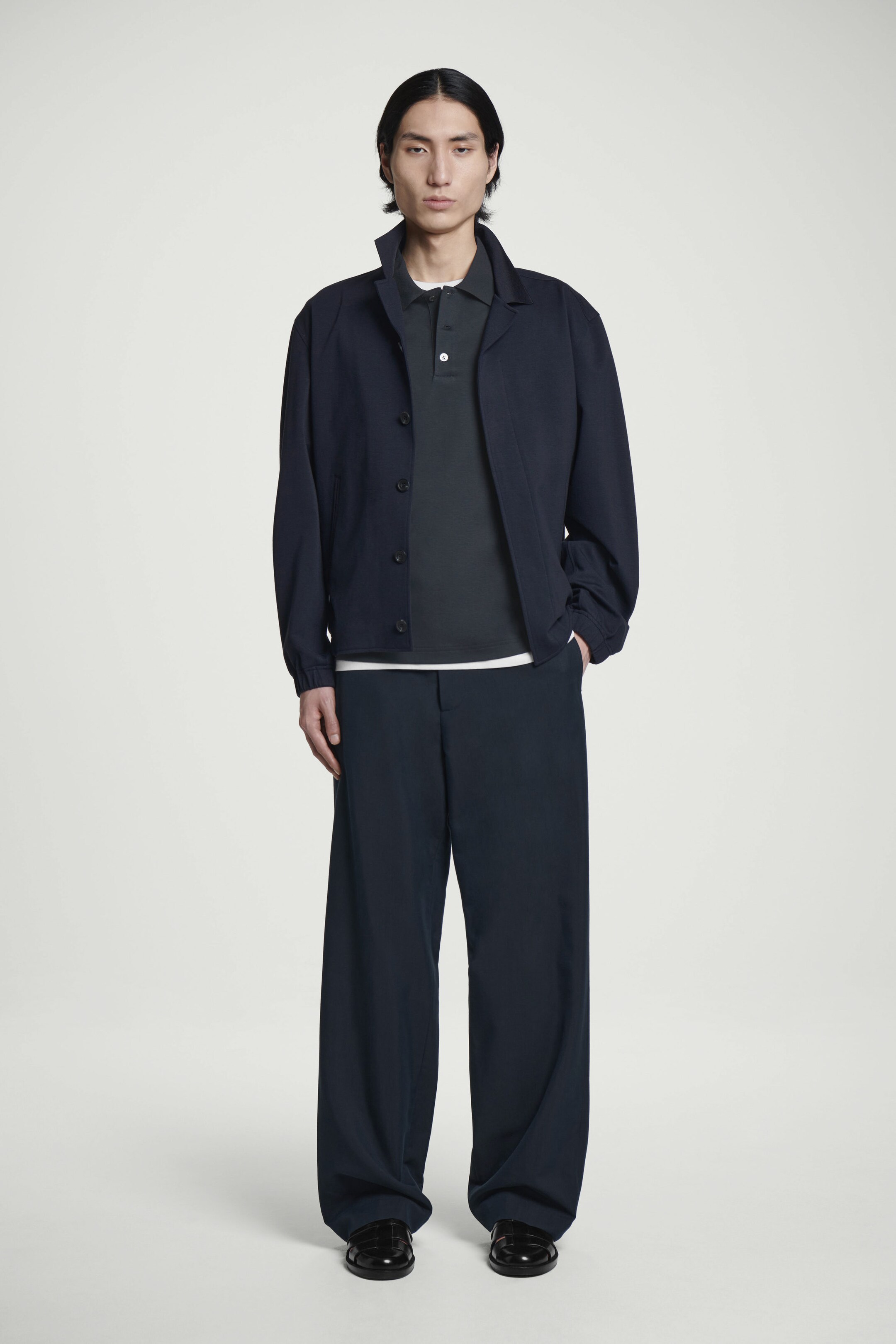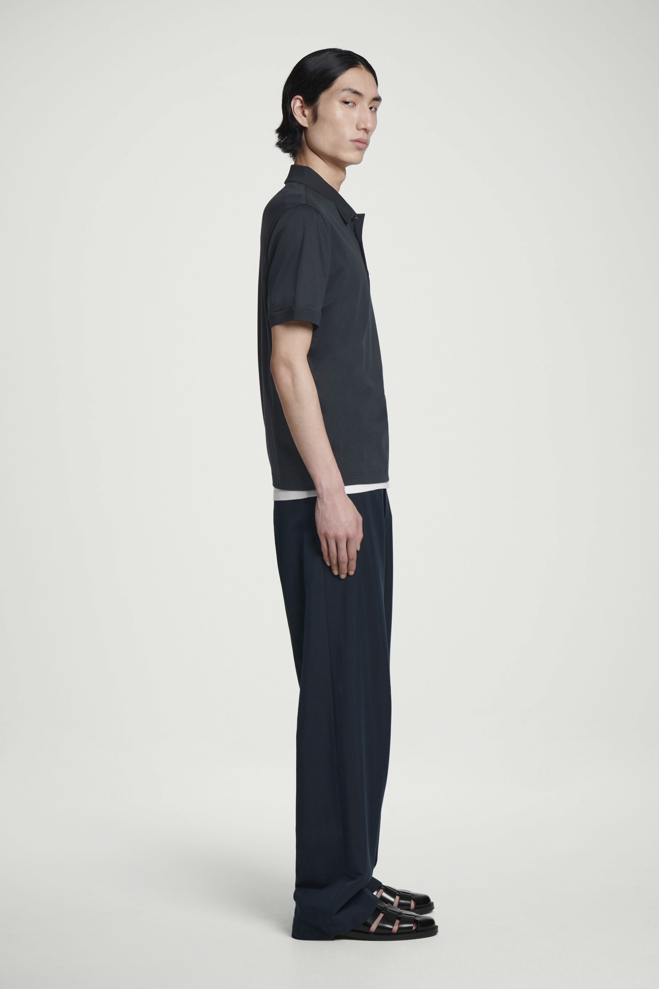 Le polo COS sert de fondation au vestiaire masculin. Proposé dans un bleu marine polyvalent, ce polo est confectionné en coton mercerisé de qualité premium. De coupe classique à col côtelé, boutons nacrés et manches courtes, il se porte facilement avec un jean ou un pantalon de costume.