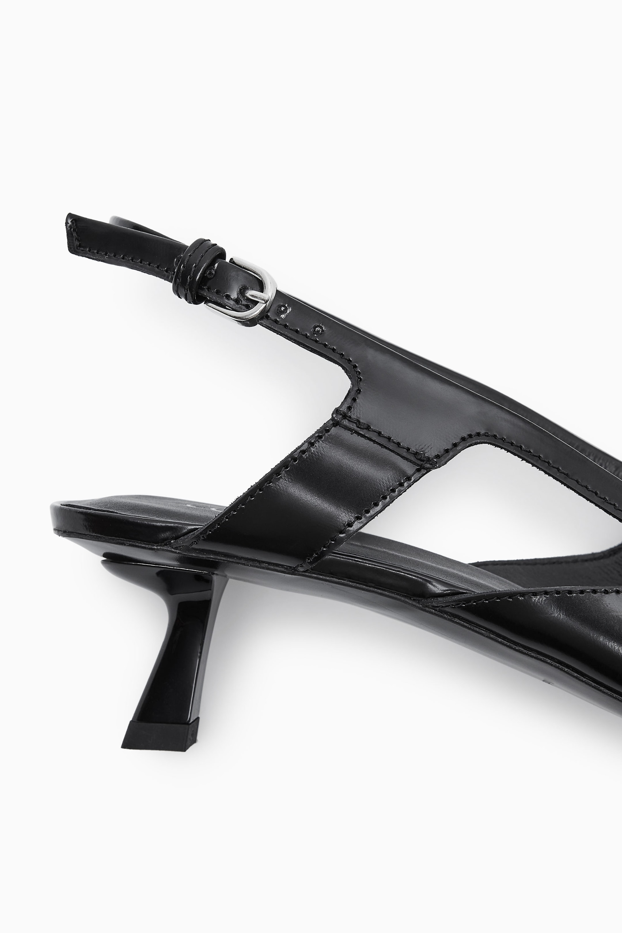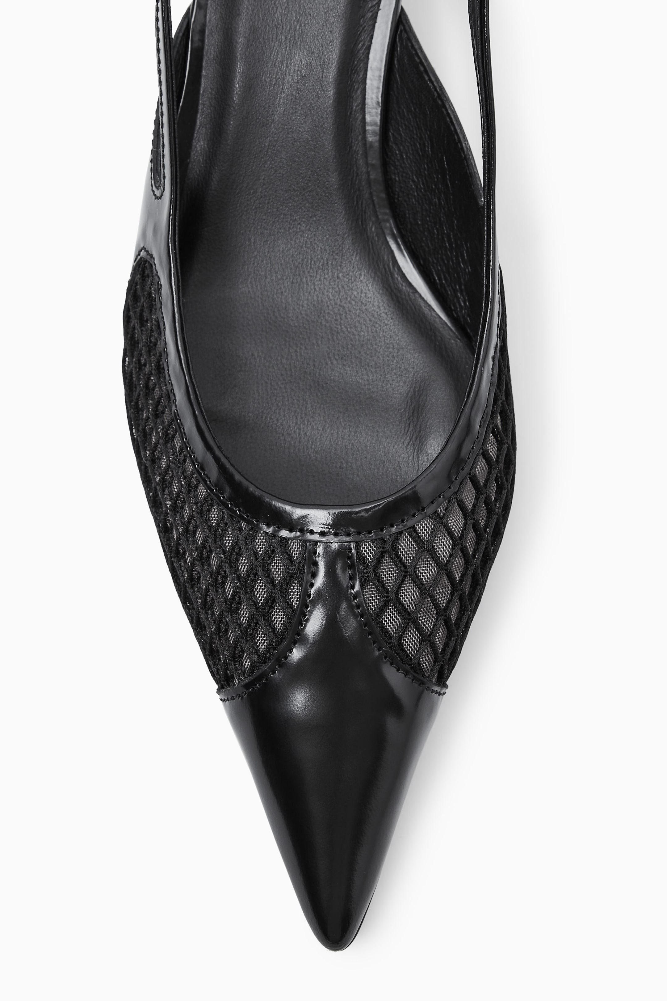 L'escarpin slingback classique trouve ses racines dans les années 40, mais cette saison, notre équipe dédiée aux accessoires l'a modernisé avec des influences sportswear. Confectionné au Portugal dans un cuir ultra-souple, ce modèle est doté d'un bout pointu exagéré, d'une empeigne en maille et d'un petit talon évasé. Il repose sur une semelle intérieure légèrement rembourrée qui assure un confort tout au long de la soirée.