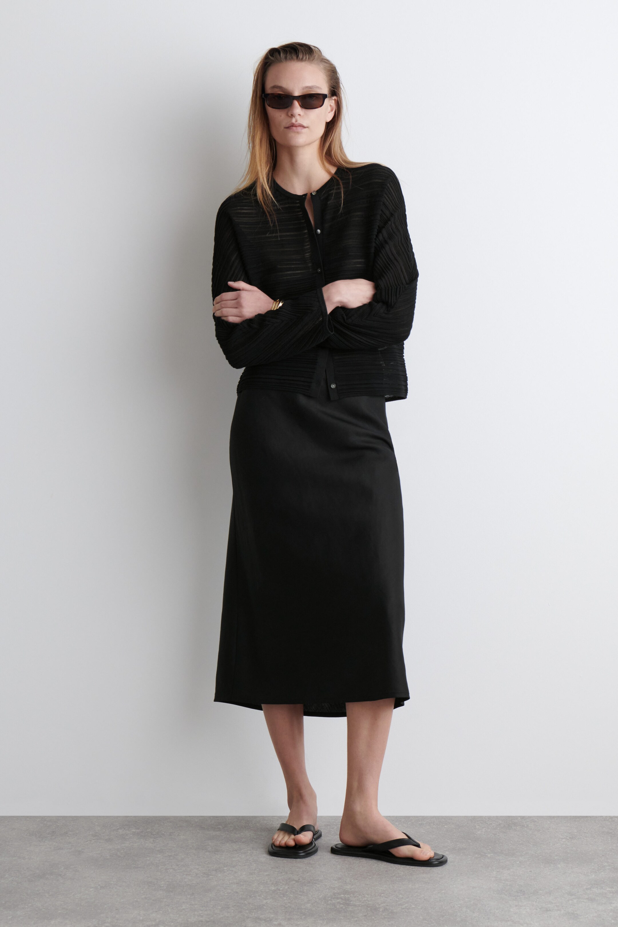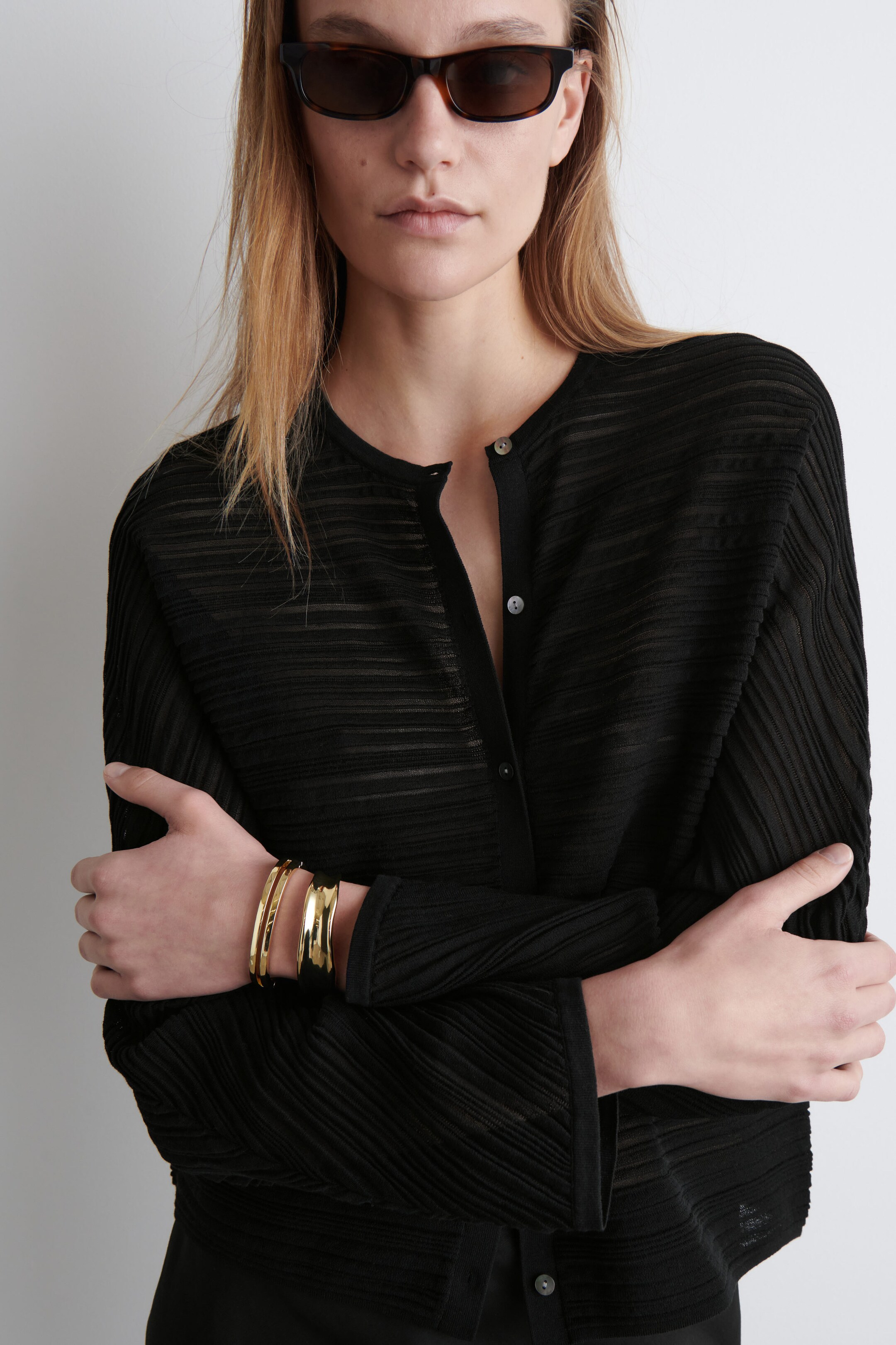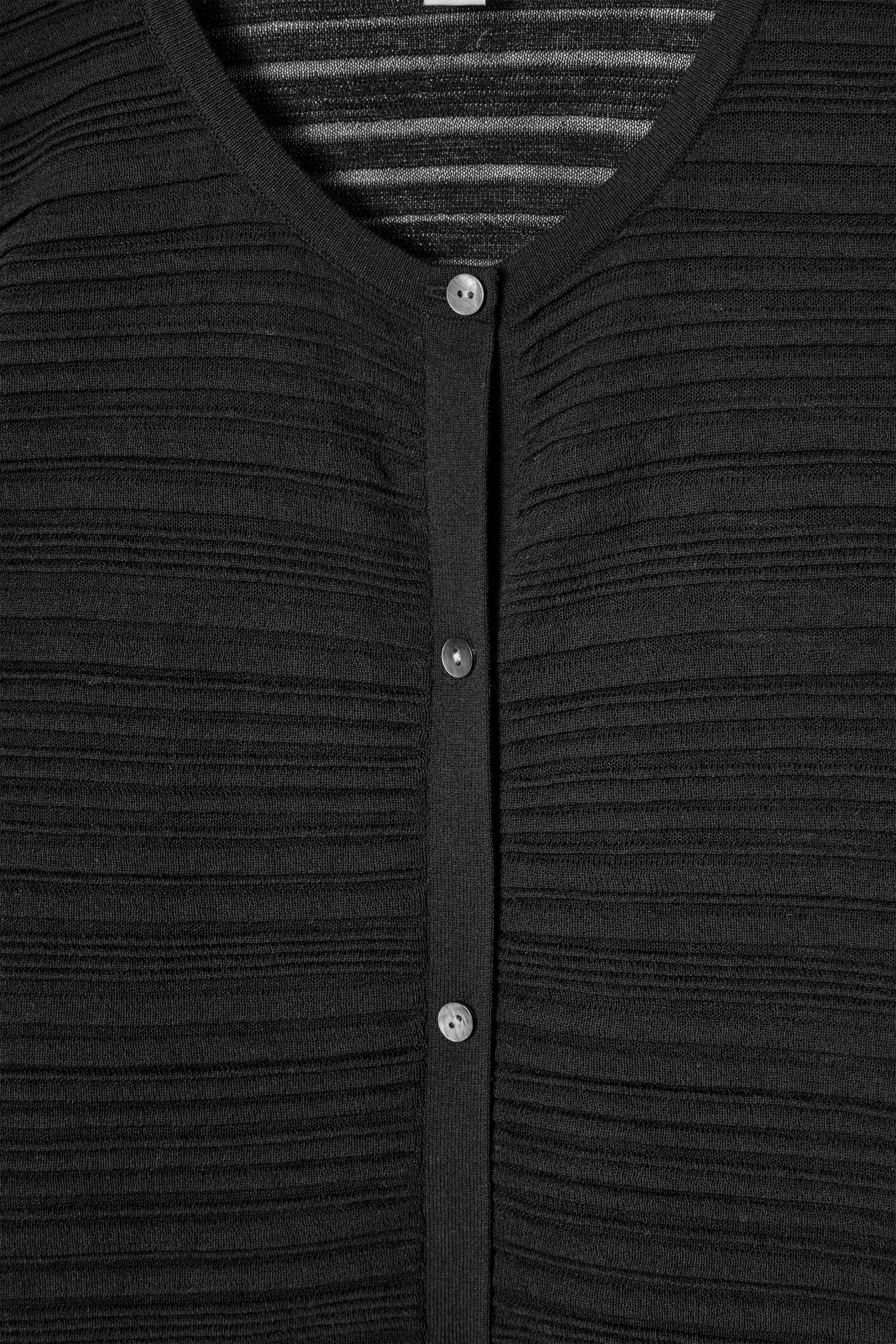 Cette saison, les pièces maîtresses de la garde-robe sont revisitées au fil de riches textures selon un savoir-faire artisanal réfléchi. Conçu dans un point ottoman texturé, ce cardigan en mélange de coton présente des rayures dimensionnelles subtilement transparentes. Dessinant une coupe décontractée, il possède des manches arrondies et des finitions tubulaires.