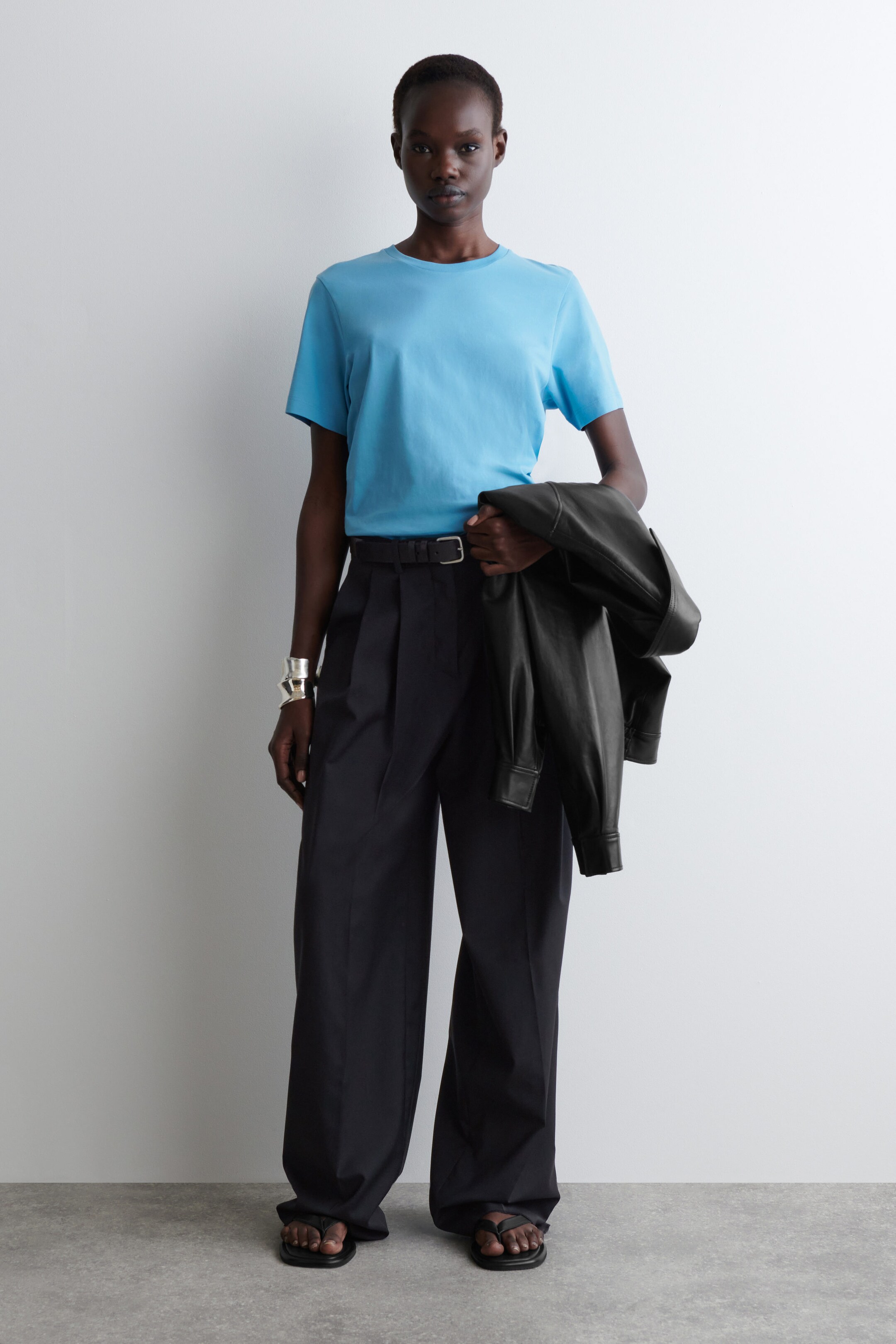 L'équipe de création du prêt-à-porter femme présente une icône de tous les jours, perfectionnée. Ce t-shirt raffiné est réalisé dans un jersey de coton léger de 150 g/m2, choisi pour son confort et sa douceur inégalée. Coupé dans une silhouette classique à col rond, il est proposé dans un ton bleu serein.