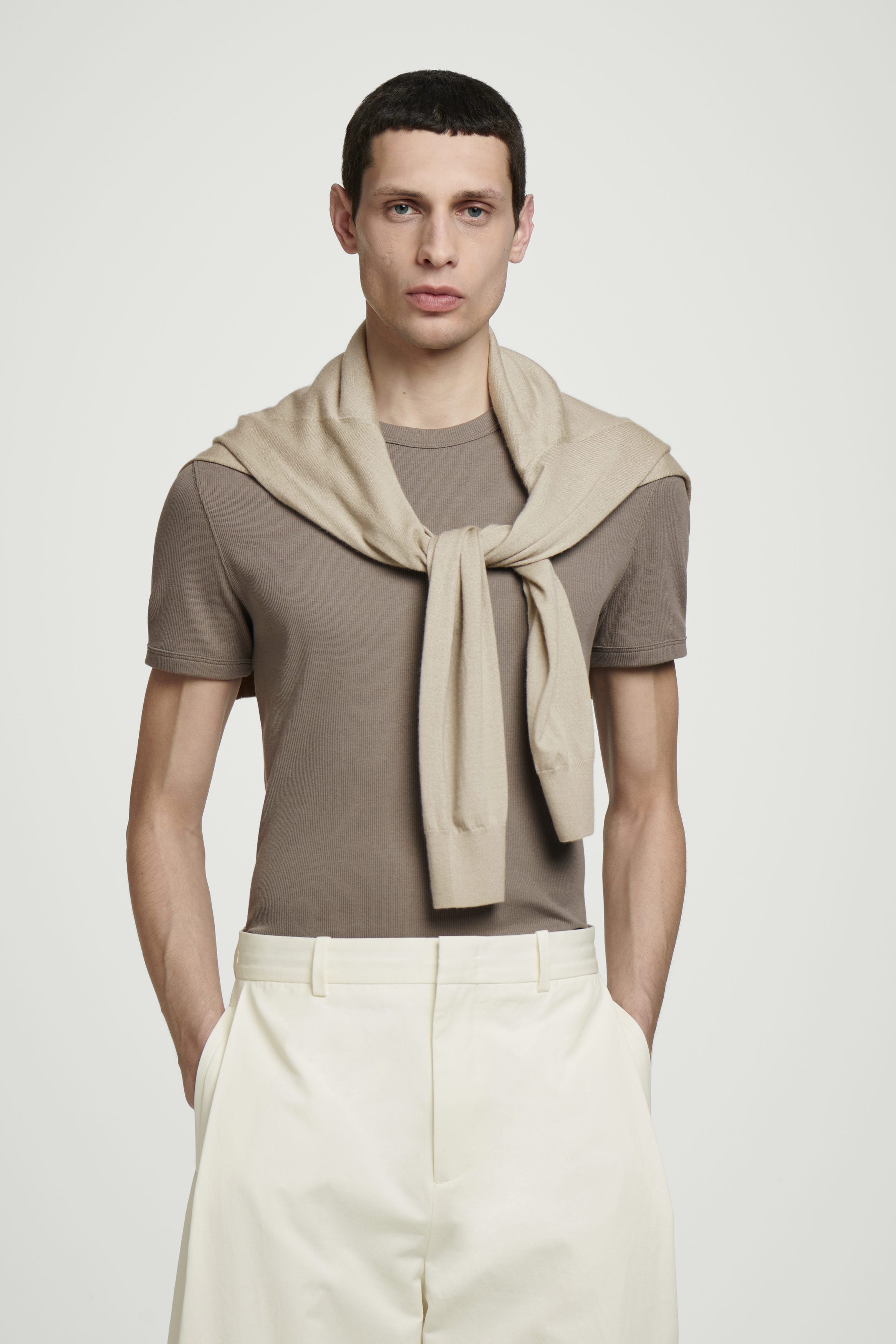 スリムTシャツは、毎日のワードローブの基盤となるアイテムです。身体にフィットする精巧なシルエットで設計されており、テーラードジャケットやパリッとしたシャツの下に重ねるのに最適なベースになります。