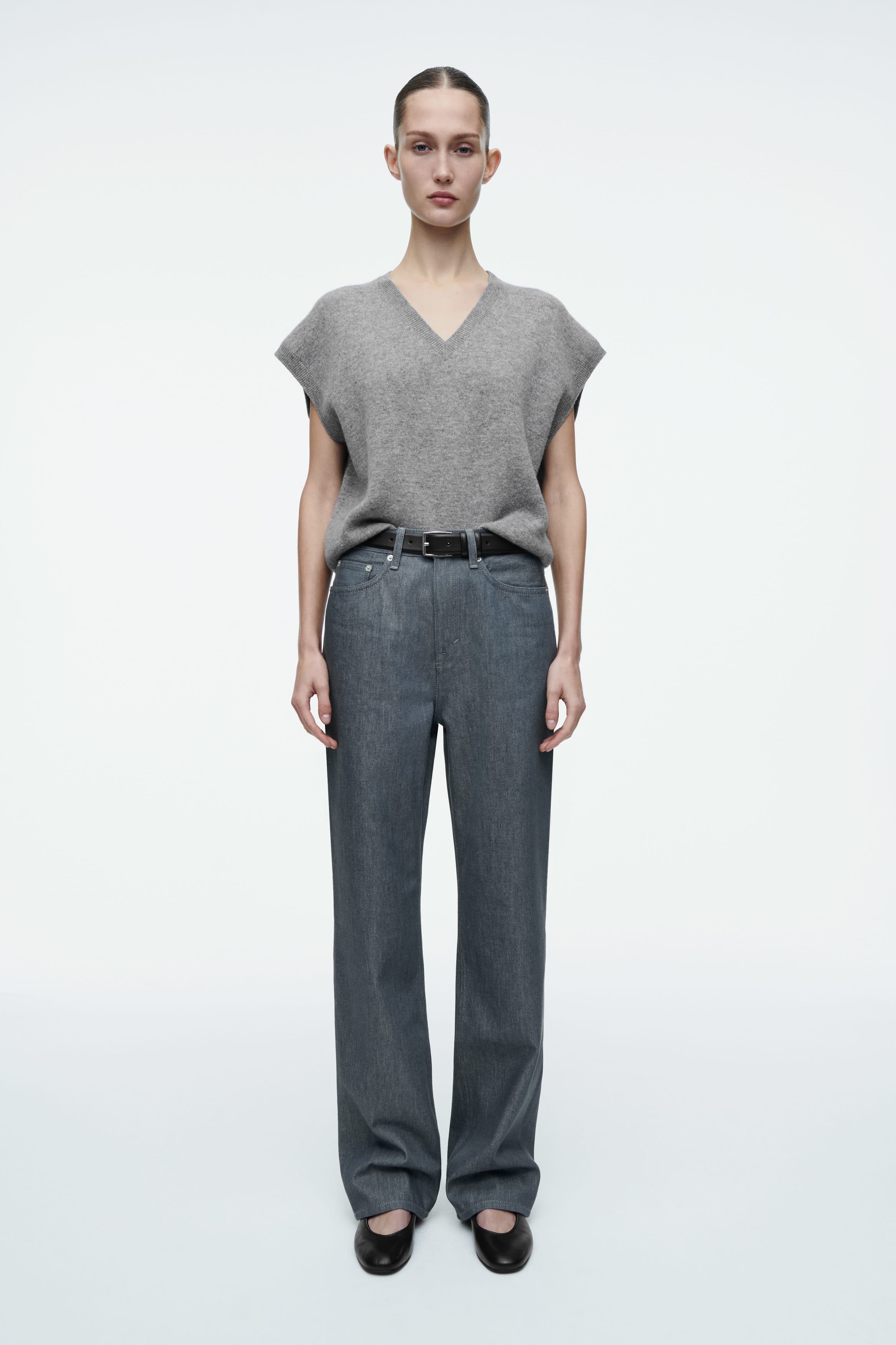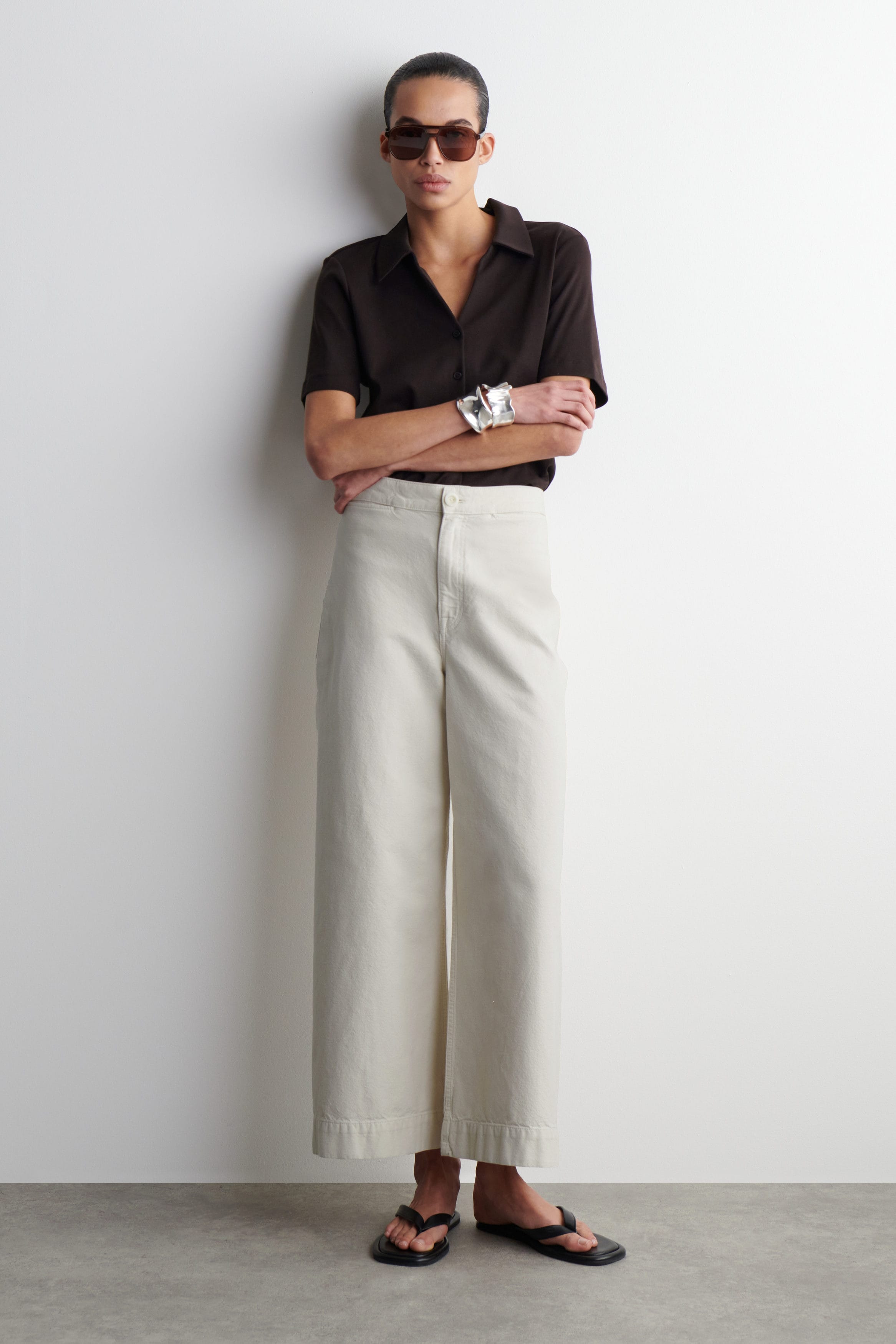 コレクションの中で最も楽に着こなせる形のCOSワイドレッグジーンズは、体にゆったりと落ちるデザインで、シルエットを長く見せます。オーバーサイズのシルエットで、靴の上に溜まるようにカットされています。ドレスコードに合わせて、ヒールやフラットシューズと合わせてスタイリングできます。