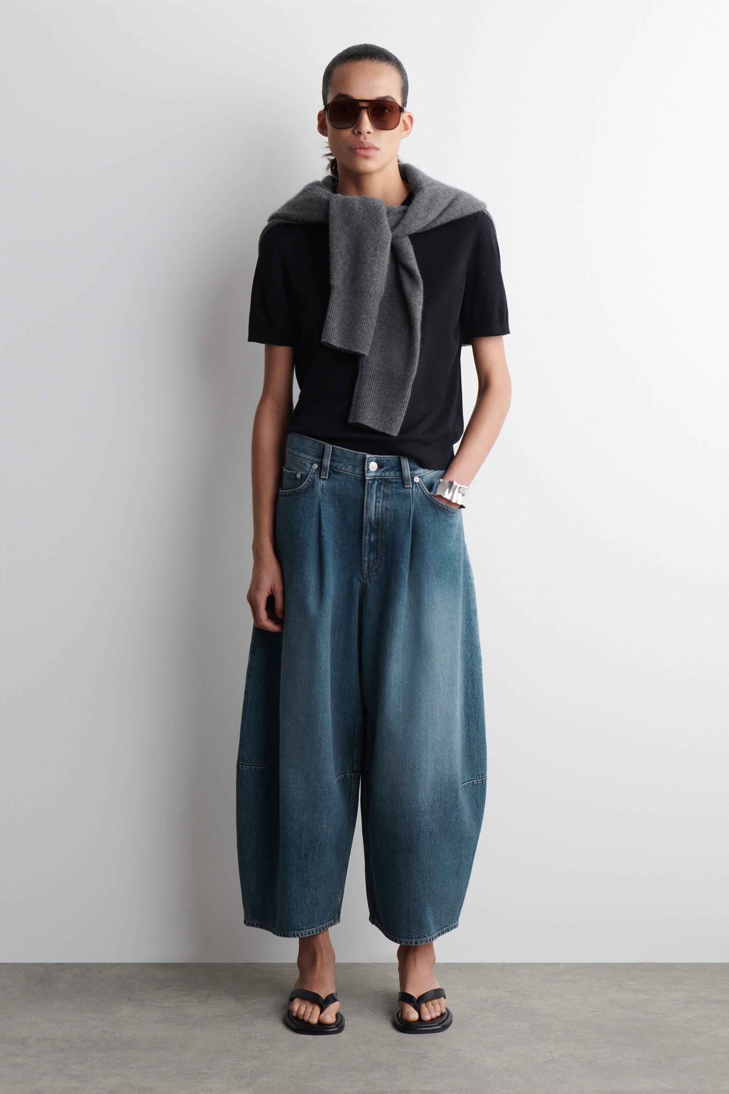 私たちのバレルレッグジーンズは、既存のデニムの定番を新たに再解釈したものです。コレクションの中で最もトレンド感のあるフィットで、柔らかな曲線を描くレッグラインが特徴で、足首に向かってわずかに細くなります。