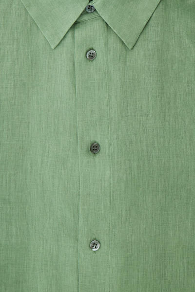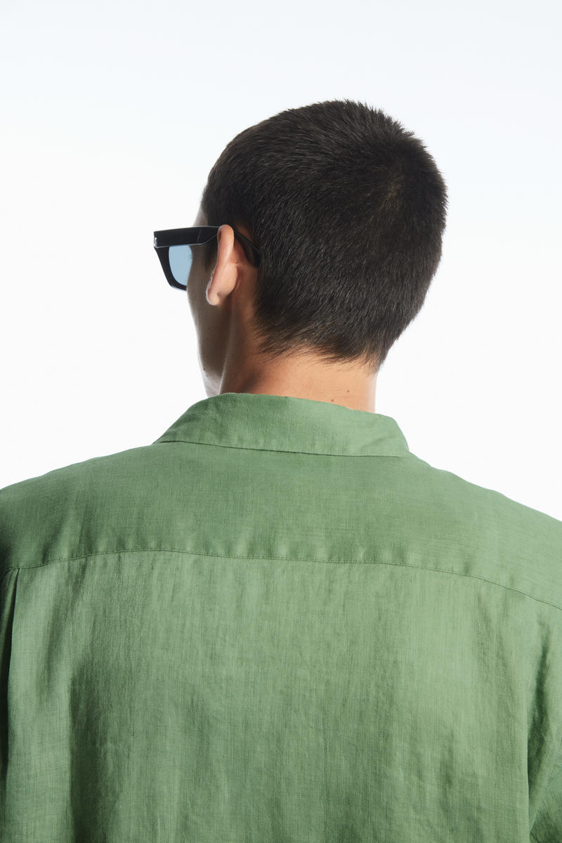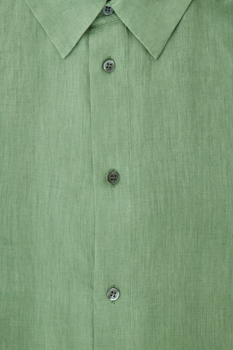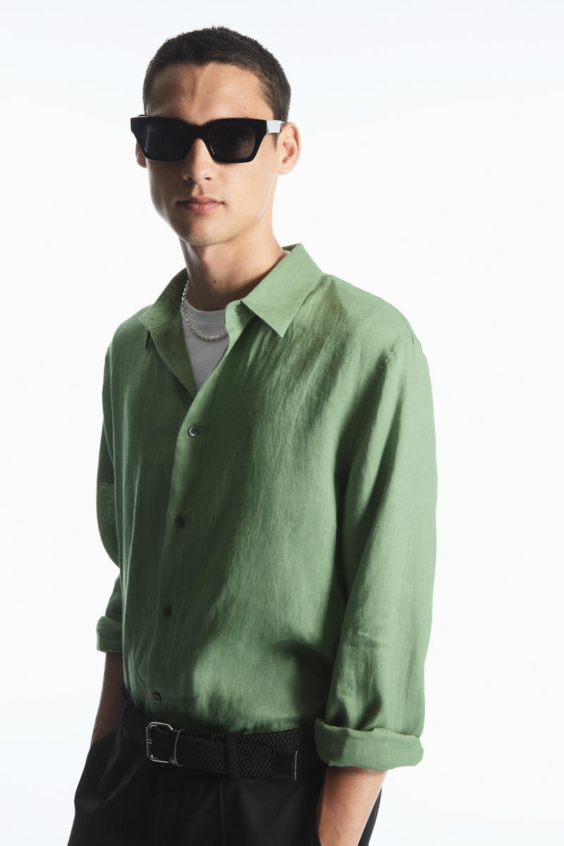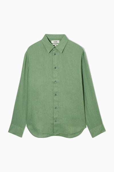 軽量で通気性のあるリネンで作られた風通しの良いシャツ。 体型をゆったりカバーするリラックスフィットのデザイン。 クラシックなスプレッドカラー、カーブ状の裾で仕上げられた長袖スタイルで、 暖かいシーズンを通してヘビロテ必須となるでしょう。 リネン 100% ( 洗濯機洗い可)サイズMは着丈77cm / モデルはサイズMを着用
