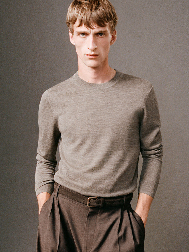 極上の手触りと優れた保温性を兼ね備えたメンズウェアの定番アイテム。羽のように軽い最高級メリノウールを厳選して使用しています。