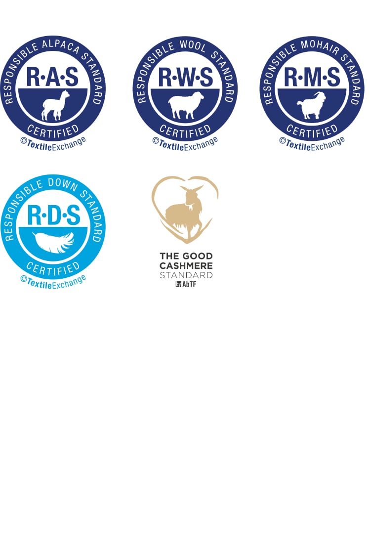 認証を受けた製品は、動物福祉および土地管理要件に独立して認定された農場からのウールファイバーが含まれています。