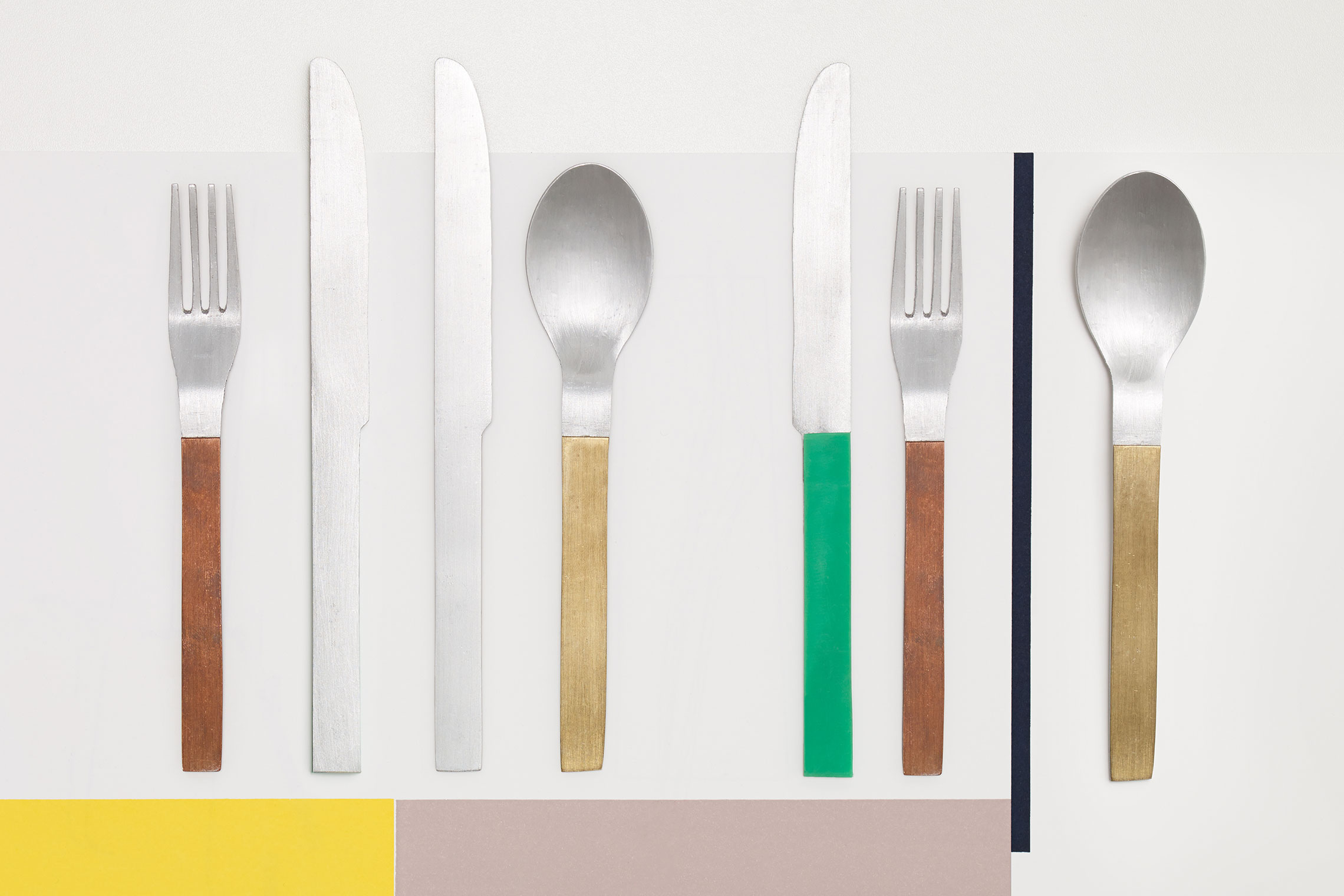 アントワープのデザインカンパニー、ヴァレリー・オブジェクト(Valerie Objects)の「カトラリー・プロジェクト(Cutlery Project)」は、国際的に活躍するデザイナーたちに、カトラリーセットのプロトタイプを作るというシンプルな依頼をしました。ベルギーのデザインデュオ、ミュラー・ヴァン・セヴェレン(Muller van Severen)は、彼らが得意とする遊び心と機能性を組み合わせたデザインへのアプローチを反映して、実用的なステンレススチールとカラフルな樹脂の組み合わせでその依頼に応えました。
