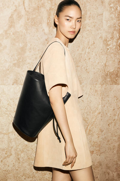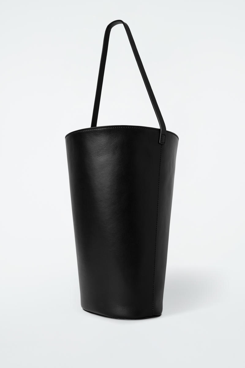 コレクションの新たなアイコンとなるこのアイテムは、クラシックなバケットバッグを再構築したデザイン。しなやかなクロムフリー・レザーを使用し、同系色のドローストリングのライニングと肩にかけて使用することも、手で持つこともできる細いストラップが特徴です。 コットンツイルライニング COSはLeather Working Group(レザー・ワーキング・グループ)を通じて、責任あるものづくりを支援しています。 素材:レザー100% 裏地:オーガニックコットン100% トリムを除く 高さ: 34cm、幅: 18.7cm、奥行き: 12cm