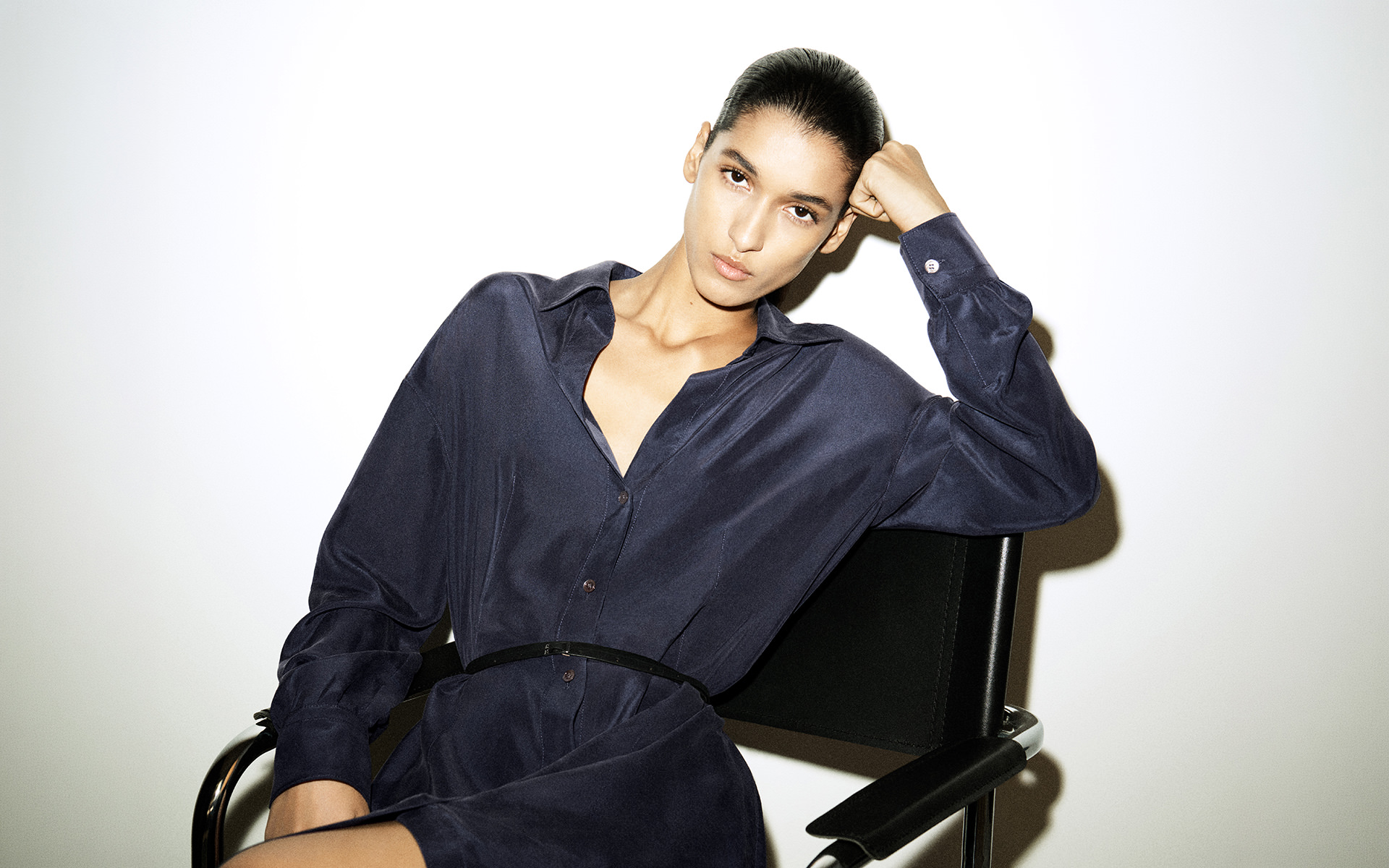 深いブルーの世界に映える、しなやかなシルクの贅沢