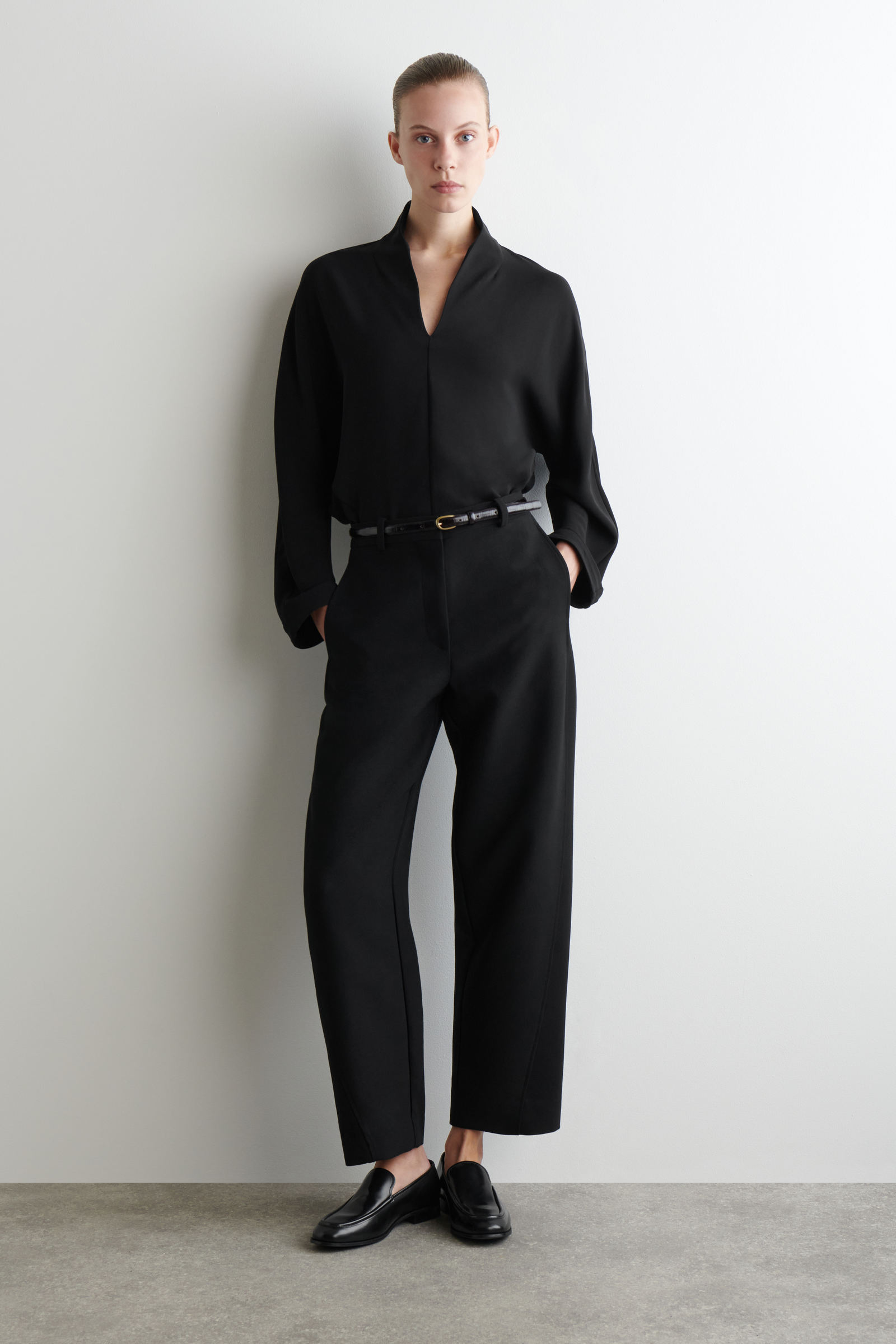 クロップドウールバレルレッグトラウザーズ
