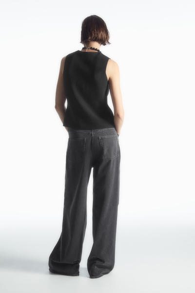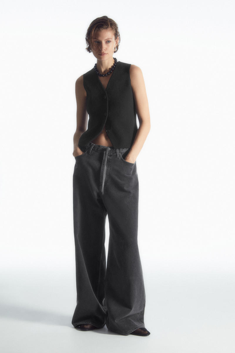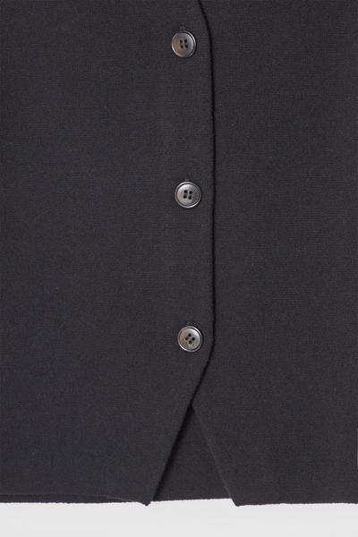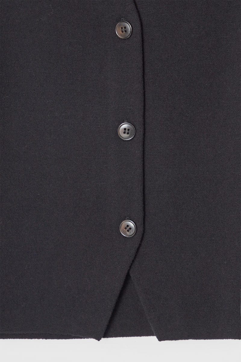 今シーズン登場した、コンテンポラリーなニットベスト。リサイクル繊維をブレンドした柔らかなコットンで丁寧に編み上げられ、裾はワイドパンツやマキシスカートと合わせる最適なV字型にデザインされています。