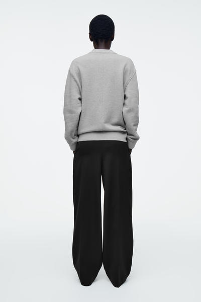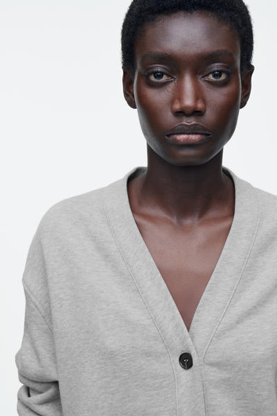 COSレディースウェアチームは、ルームウェアのスタイルを格上げする洗練されたアイテムのコレクションを発表。ダブルフェイスのコットンジャージーから作られたこのカーディガンは、Vネックのシルエットで、季節の変わり目にタンクトップの上に重ねるのに最適です。袖口とウエストバンドはリブ編みのデザイン。 リラックスフィット ボタン留め 素材:コットン100% トリムを除く / 洗濯機洗い サイズSの着丈は59cm / モデルはサイズSを着用