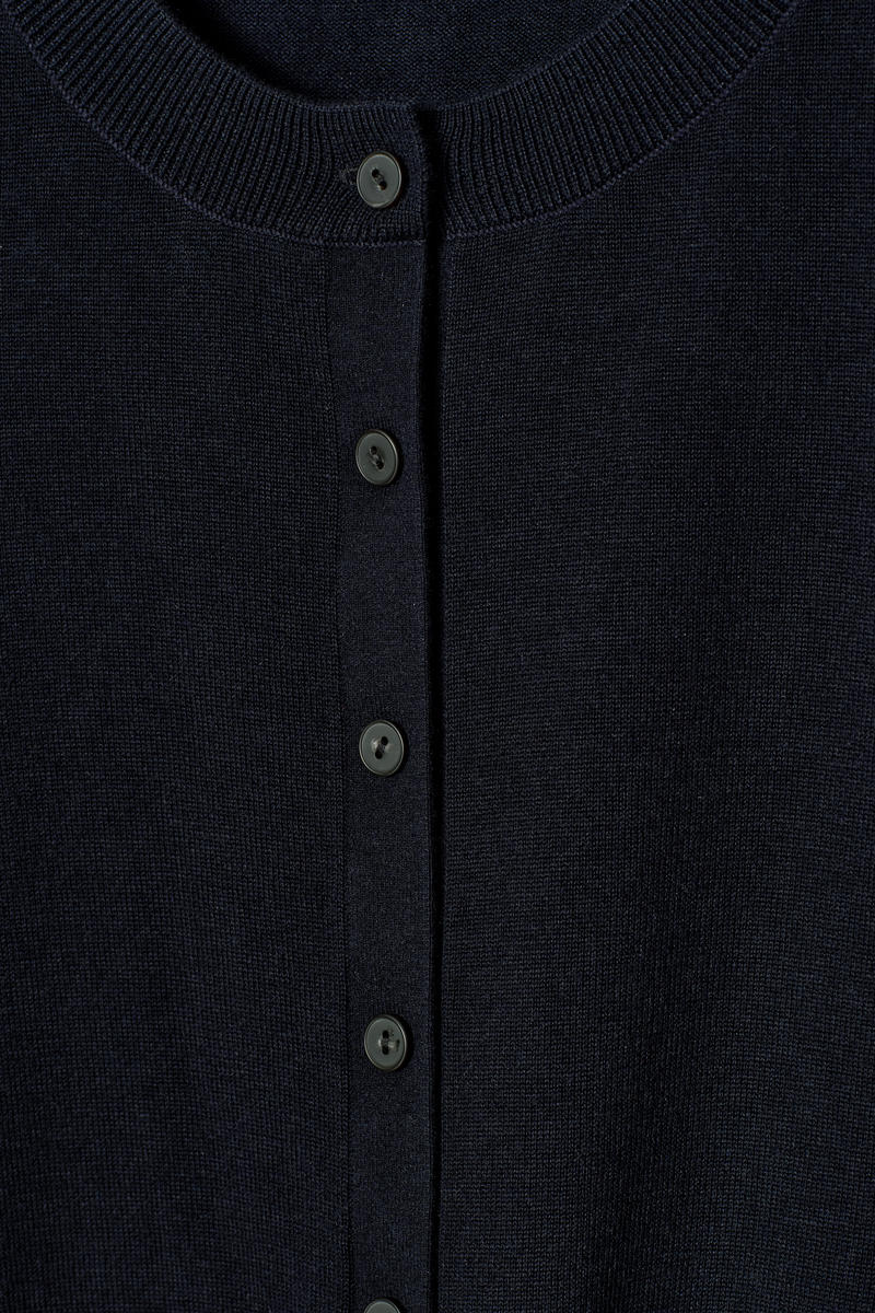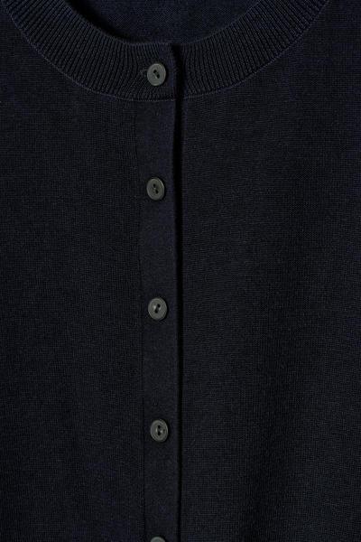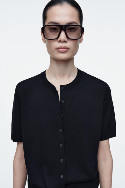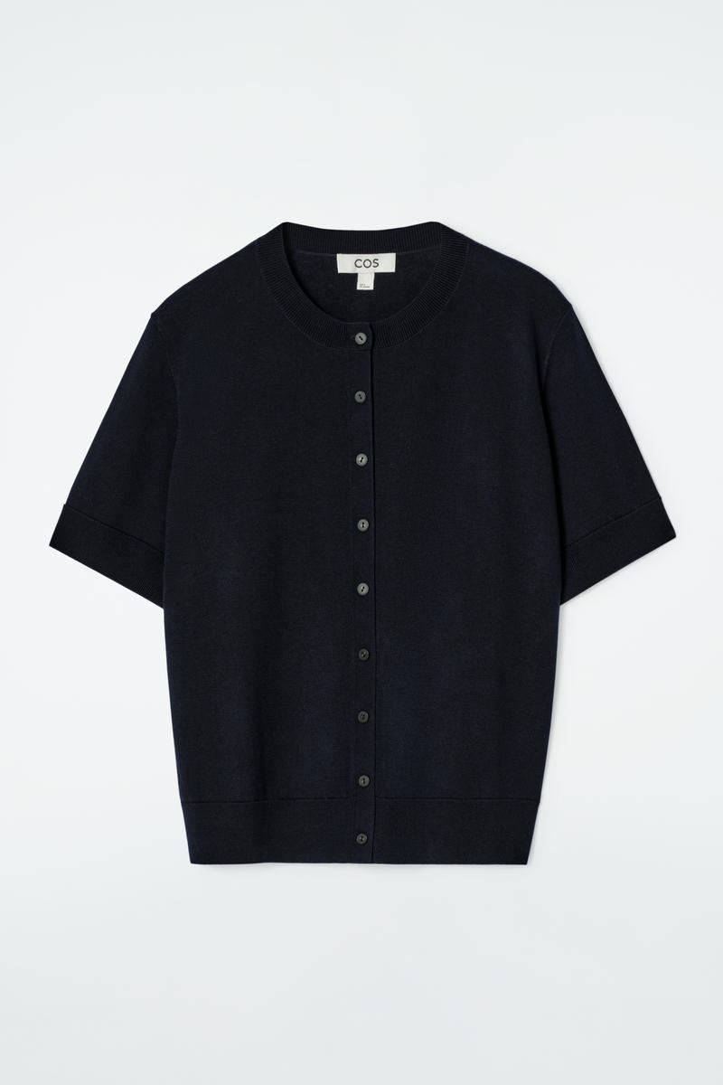 シンプルなデザインが特徴のクラシックなシルエットのカーディガン。リブ編みのクルーネック、ショートスリーブ、そして同系色のボタンがアクセントに。非常にソフトなメリノウールブレンド素材を使用し、90年代を彷彿とさせるスリムフィットに仕上げています。 レギュラーフィット ボタン留め テンセル™はレンチング社の商標です。テンセル™リヨセルは再生可能な木材を原料とし、化学物質と水を99%リサイクルする製法で作られています。 素材:テンセル™・リヨセル67%、RWSウール33%。トリムを除く/洗濯機洗い Sサイズの着丈は54cm / モデルはSサイズを着用