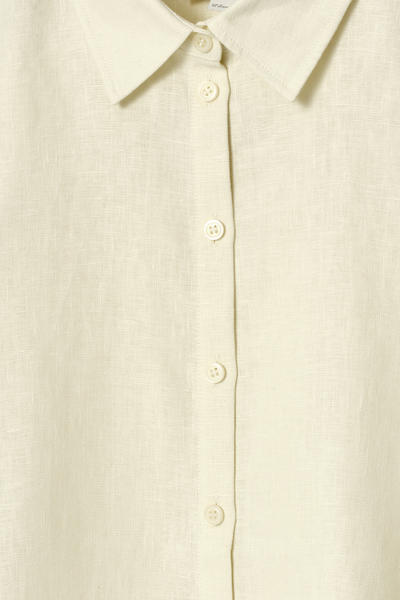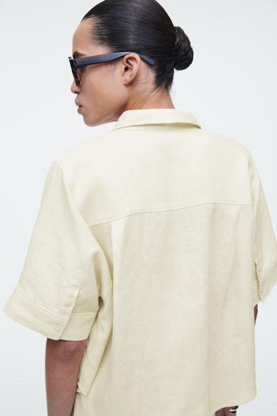 このボクシーなシャツは、夏の着こなしにリラックスしたテイストを提案。軽やかなピュアリネン素材から作られ、ポインテッドカラーと半袖のデザインが特徴です。 レギュラーフィット ボタン留め リサイクル・リネンは生産工程で出る紡績くずや裁断くずから作られます。廃棄物は機械的にリサイクルされ、新しい糸に紡がれます。 素材:70%リネン、30%リサイクルリネン。トリムを除く / 洗濯機洗い サイズEU 36の着丈は59.3cm / モデル着用サイズEU 36