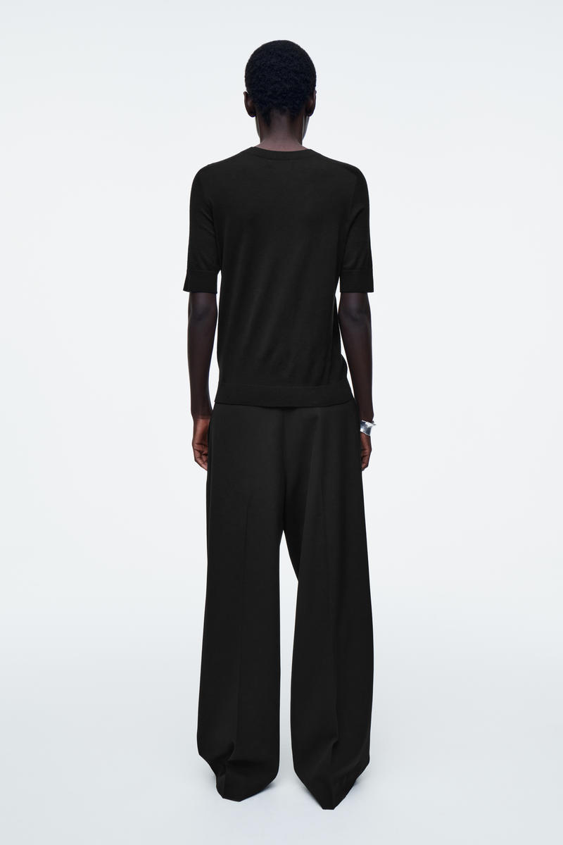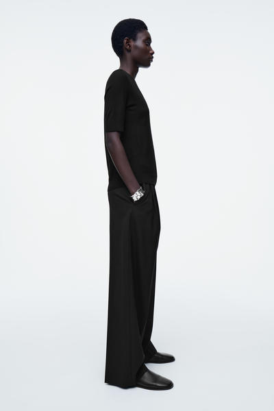 COSの洗練されたニットTシャツがアップデートして登場。柔らかで温かみのあるプレミアムなスーパーファインメリノウールを使用し、重ね着に最適なスリムなシルエットが特徴です。
