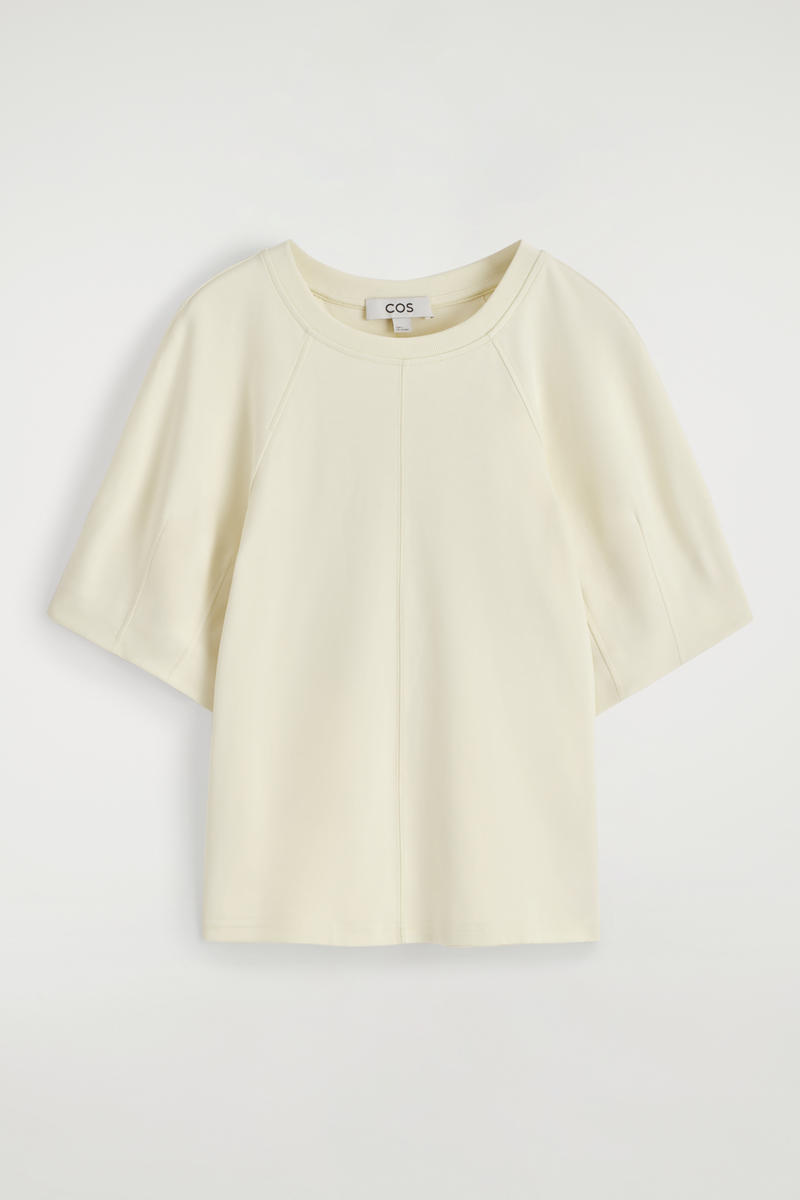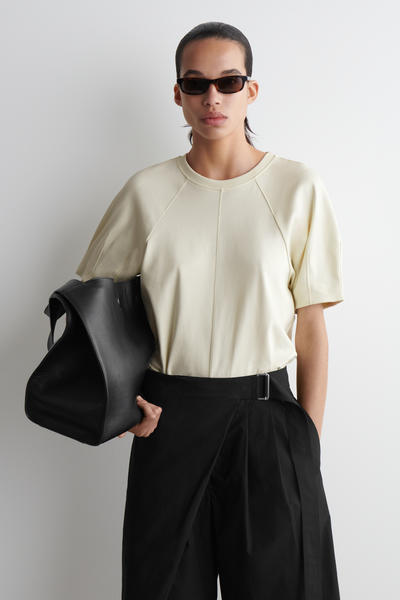 この洗練されたTシャツは柔らかなコットン製で、ふわっとしたパフスリーブが特徴。丁寧に入ったダーツがボリュームと形が出るようにデザインしており、縫い目はトップステッチですっきりと仕上げています。 レギュラーフィット 素材:コットン100% トリムを除く/洗濯機洗い可 サイズSの着丈は52.5cm / モデルはサイズSを着用