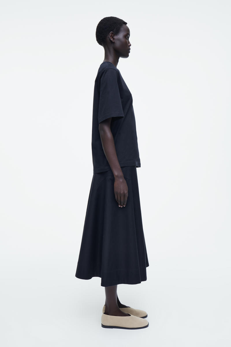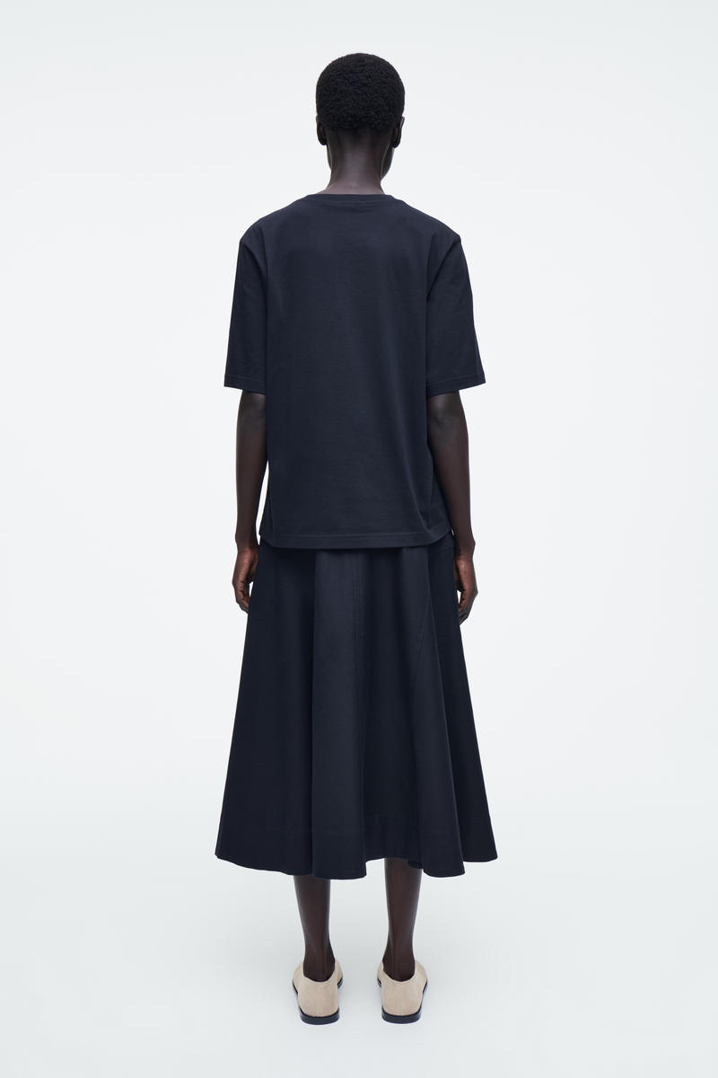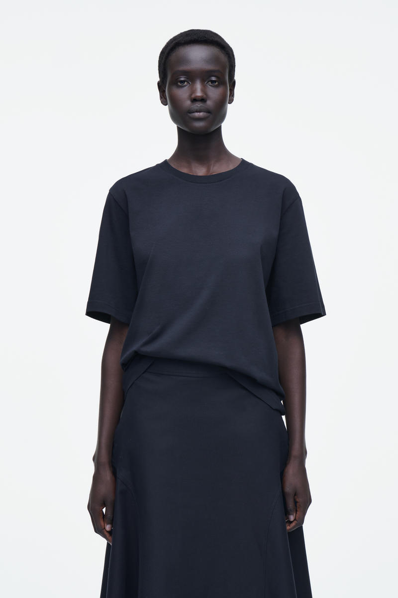 COSのレディースウェアチームは、毎シーズン、シグネチャーTシャツを進化させ続けます。160gsmの軽量オーガニックコットンジャージーを使用したこのTシャツは、リブ編みのクルーネックと半袖のリラックスしたシルエットが特徴です。 リラックスフィット、160gsm オーガニックコットンは非遺伝子組み換えの種から栽培され、化学肥料や農薬を使用していません。 素材:オーガニックコットン100%。トリムを除く/洗濯機洗い サイズSの着丈は64cm / モデルはサイズSを着用