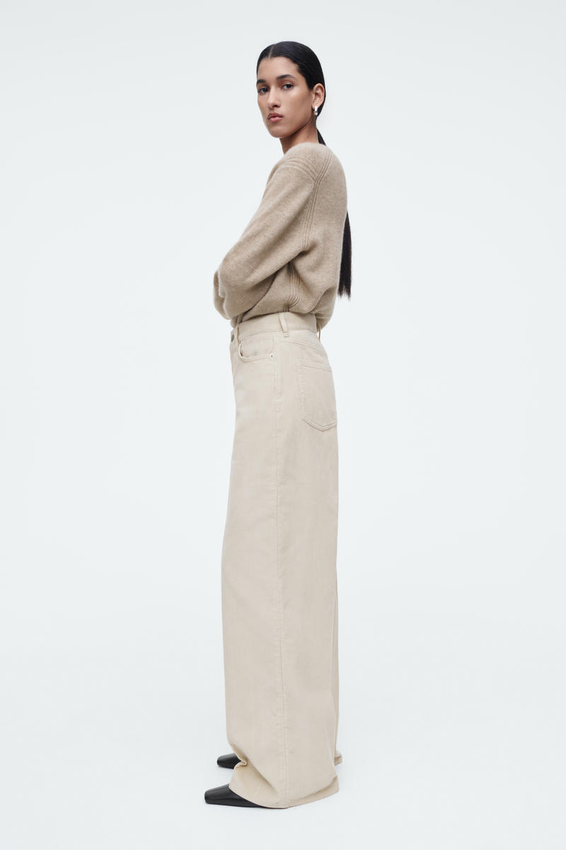 ハイウエストとワイドで長いレッグが特徴のTIDEジーンズは、70年代風のコットン・コーデュロイを使用し、タイムレスなカラーに生まれ変わりました。フルレングスの裾は床まで届き、フラットシューズだけでなくヒールとも好相性です。