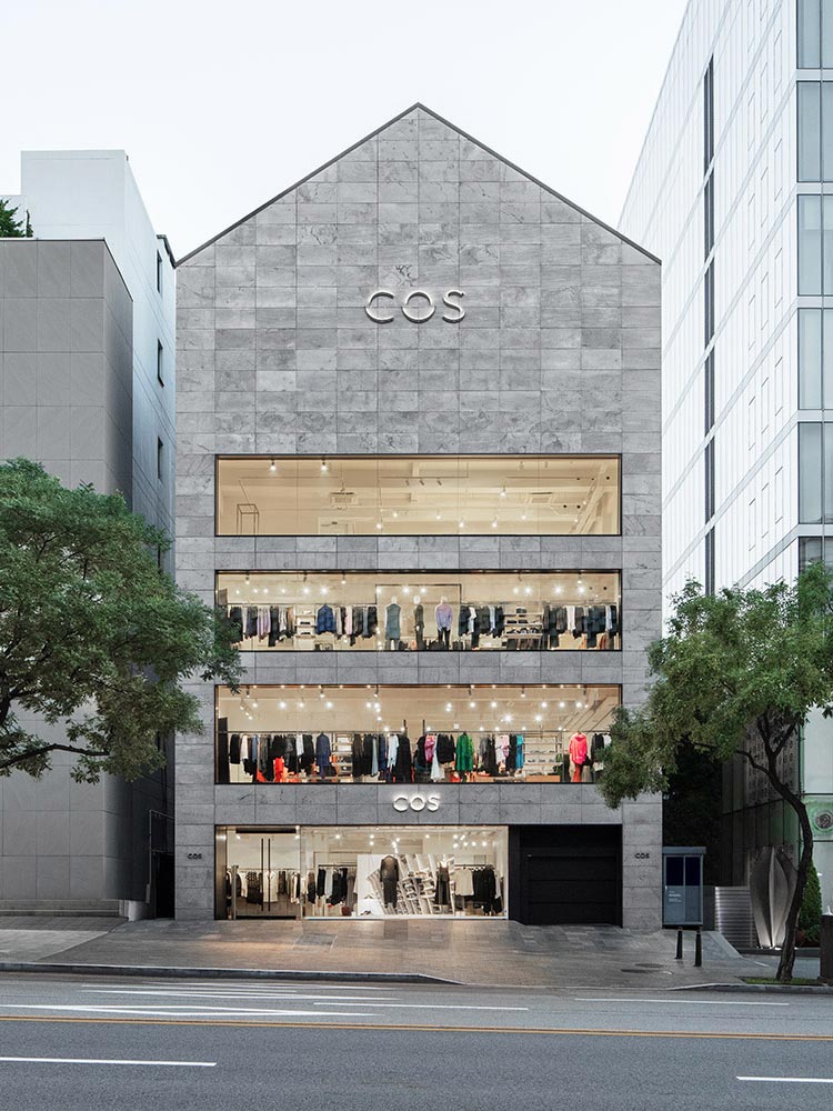서울 강남의 대로에 자리한 COS 매장은 혼잡한 청담동의 번화한 도심에서 차분한 순간을 제공합니다.