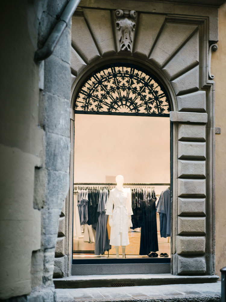피렌체의 번화한 교차로 한 쪽 코너에는 팔라쪼 안에 자리한 COS 매장이 있습니다.
