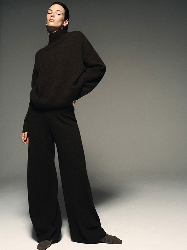 겨울 데일리 룩에서 니트 라운지웨어 세트는 자연스러운 느낌을 자아냅니다. 장거리 비행이나 재택근무 때 입기 좋은 세트 아이템은 세련된 액세서리와 함께 드레스 업하면, 한층 더 감각적인 룩으로 연출할