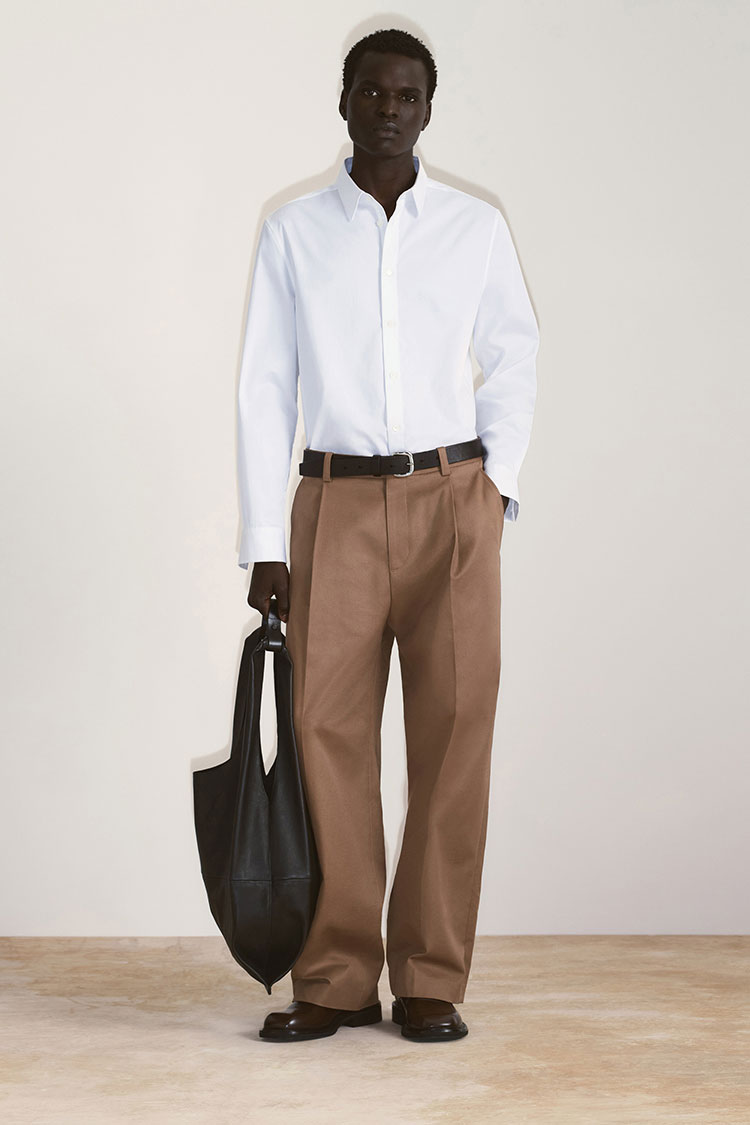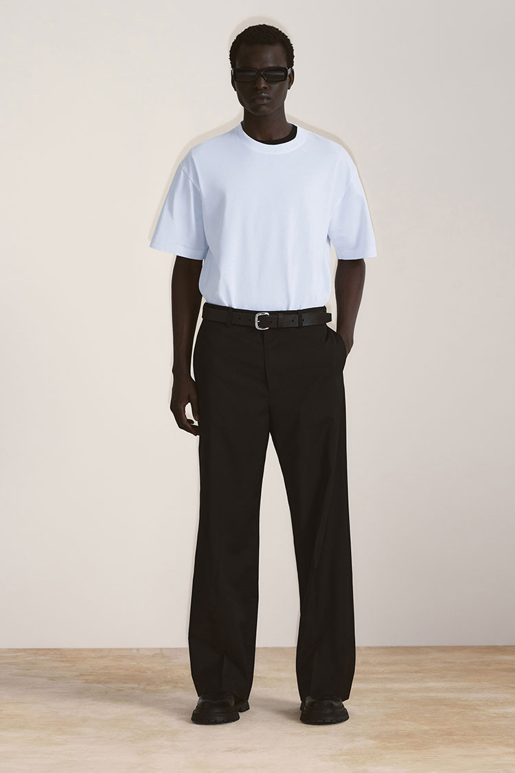 클래식한 쇼트 슬리브 티셔츠와 루즈 핏 트라우저를 에센셜 컬러로 선보이며, 이 아이템들은 사계절 내내 활용할 수 있는 워드로브의 필수 아이템입니다.