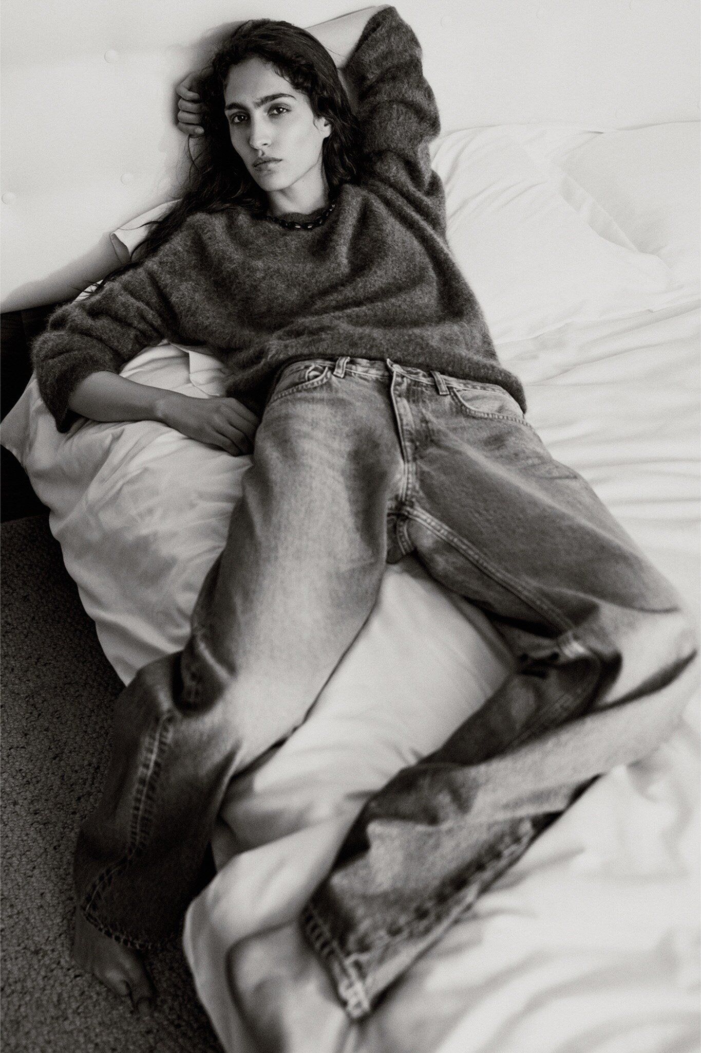 완성했습니다. 메리노 울과 캐시미어 블렌드로 제작된 오버사이즈 스타일은 한층 더 따뜻한 착용감을 제공하며, 한겨울에도 레이어링하기에 좋은 아이템입니다.