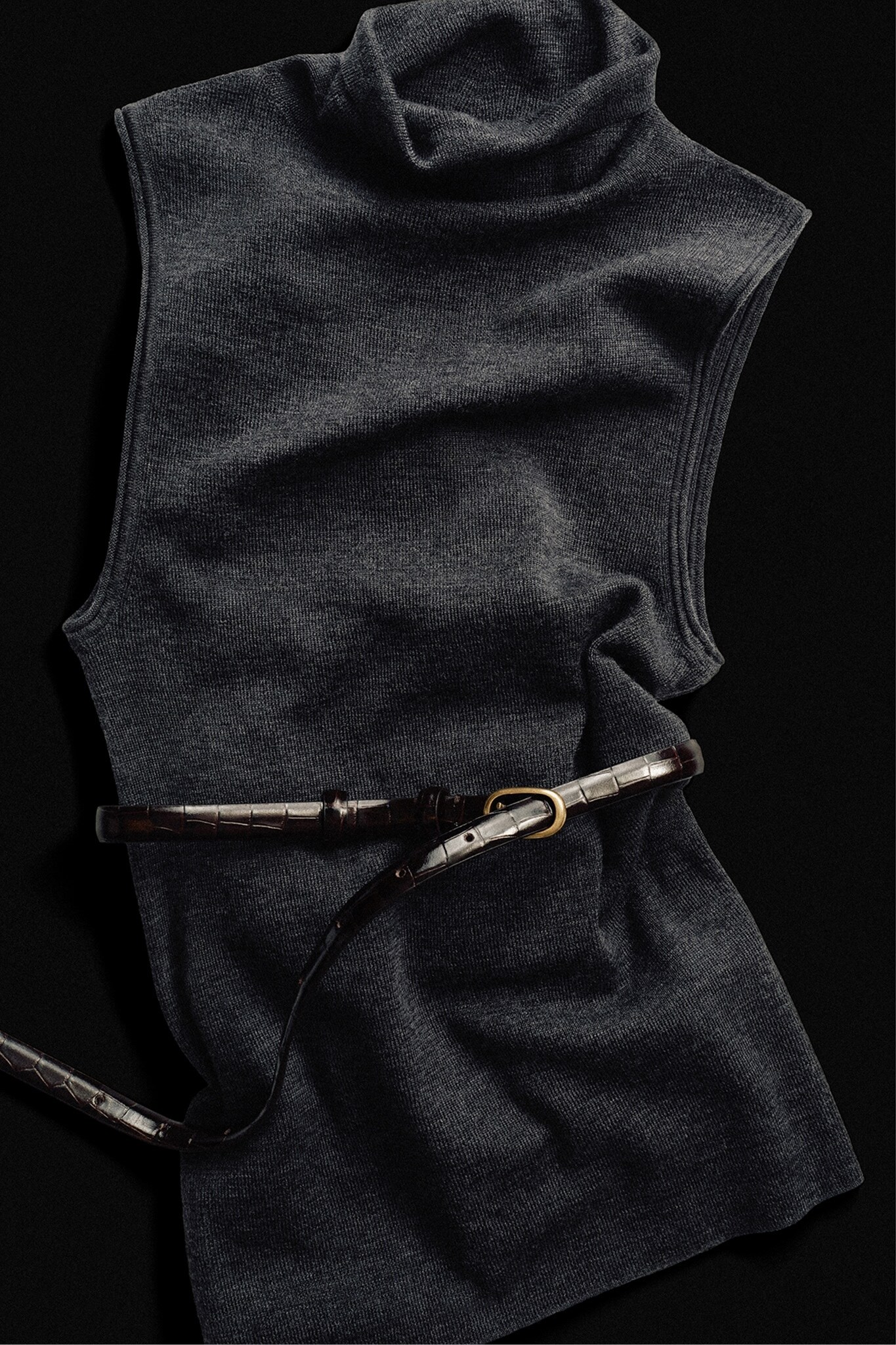 포멀 스타일에 어울리는 슬림한 하이넥 롱 슬리브 탑과 슬리브리스 하이넥 베스트, 트라우저 안에 레이어링하기 좋은 레깅스까지 선보입니다. 심리스 구조와 튜블러 마감은 착용감을
