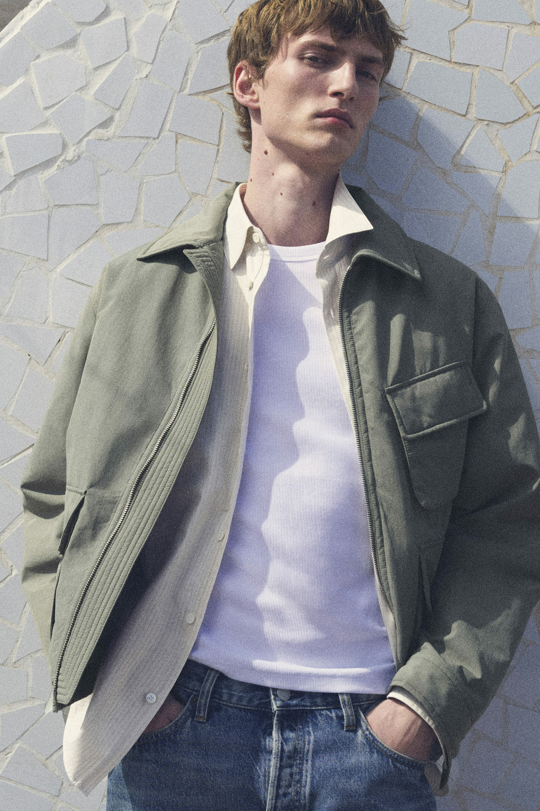남성 스타일의 대표적인 아카이브 아이템. COS 플라이트 재킷은 플랩 포켓과 스냅 버튼으로 유틸리티 무드를 반영하며, 절제된 디테일을 통해 모던한 스타일로