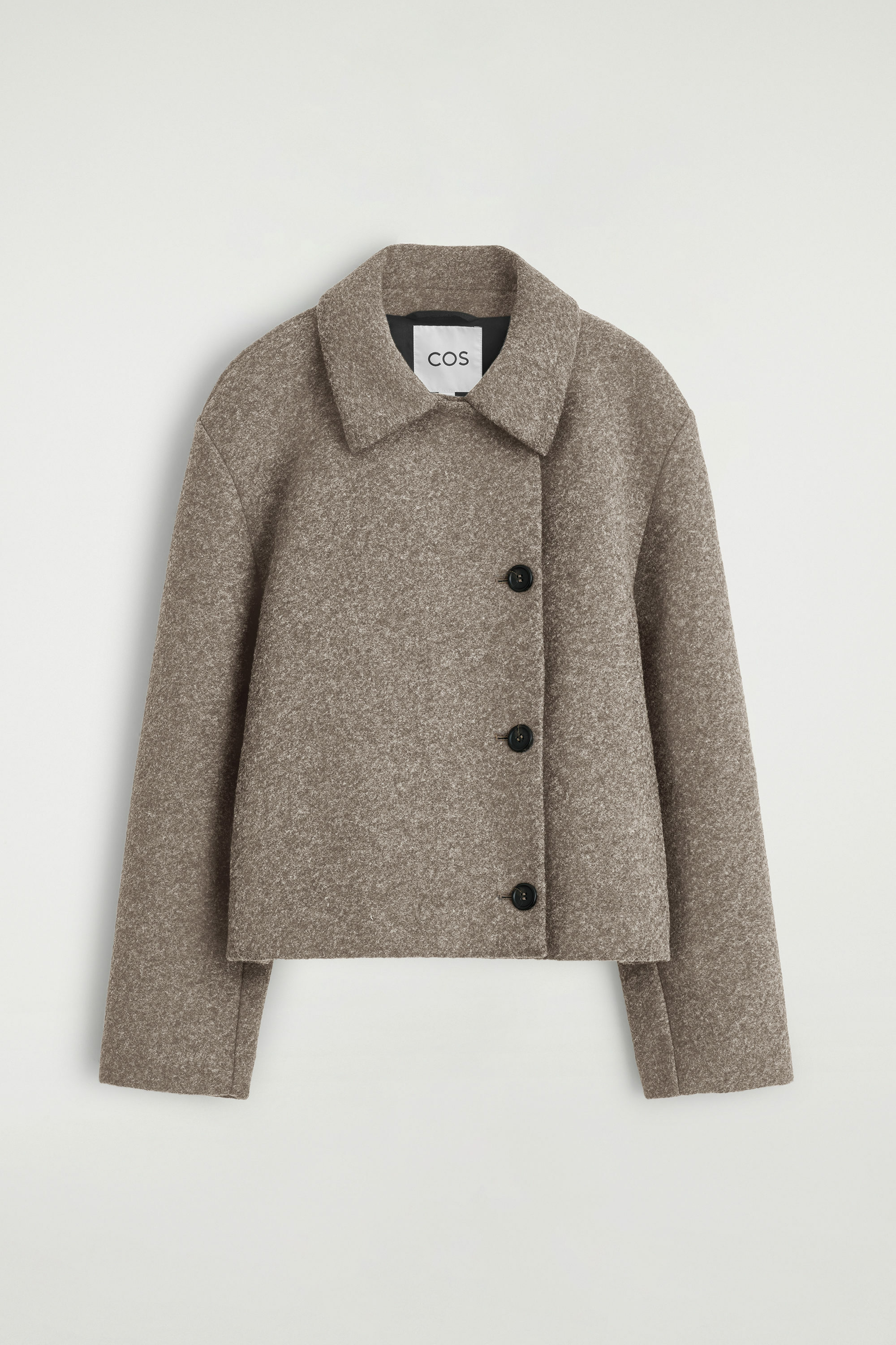 퍼널 칼라는 COS만의 시그니처 디자인 요소로, 타임리스 디테일 속에서도 세련된 감각을 드러냅니다.