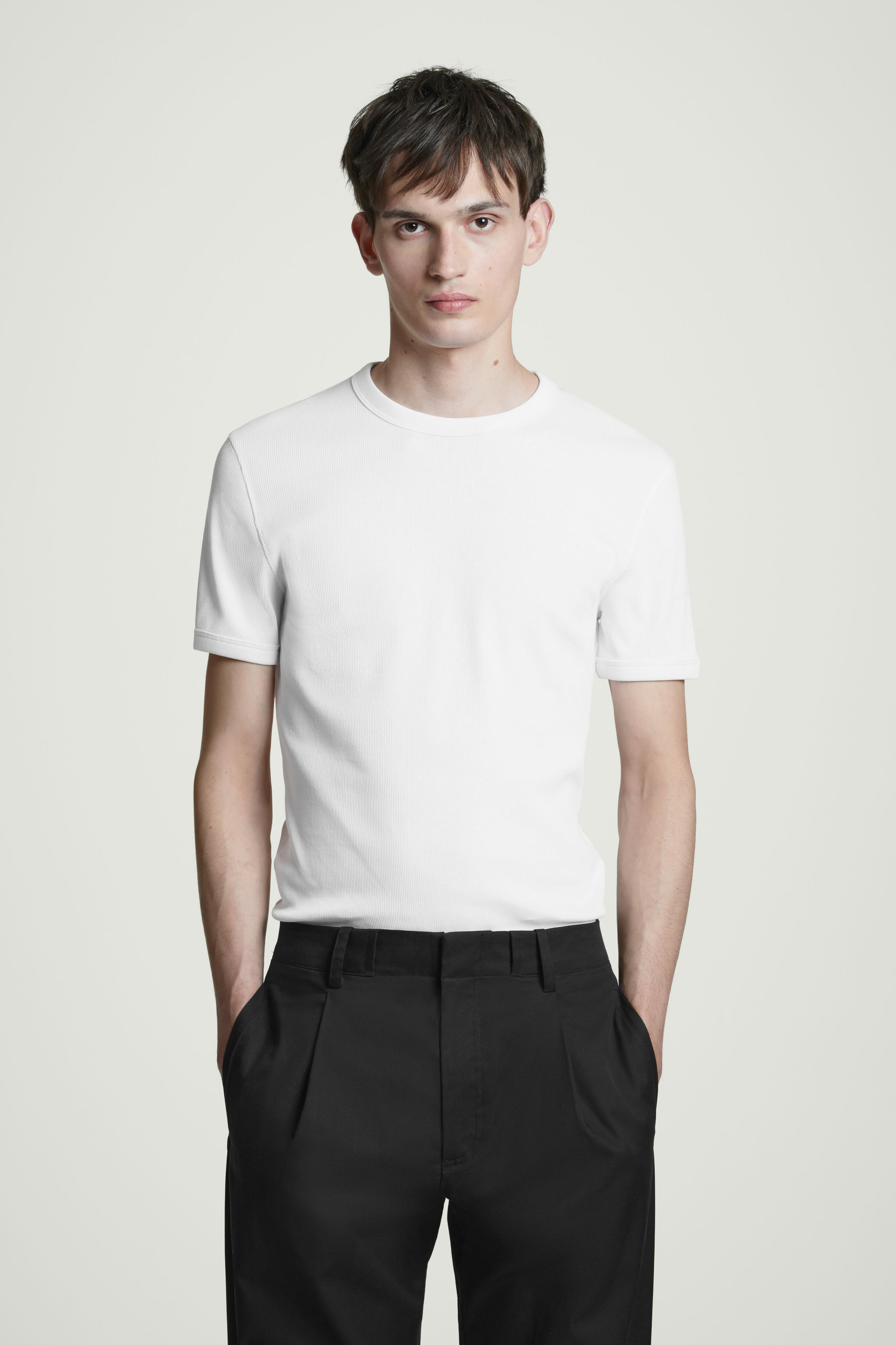 슬림 핏 티셔츠는 데일리 워드로브의 기본 아이템입니다. 몸에 꼭 맞게 제작된 정교한 실루엣으로, 테일러링 아이템이나 셔츠 안에 레이어링하기 좋습니다.