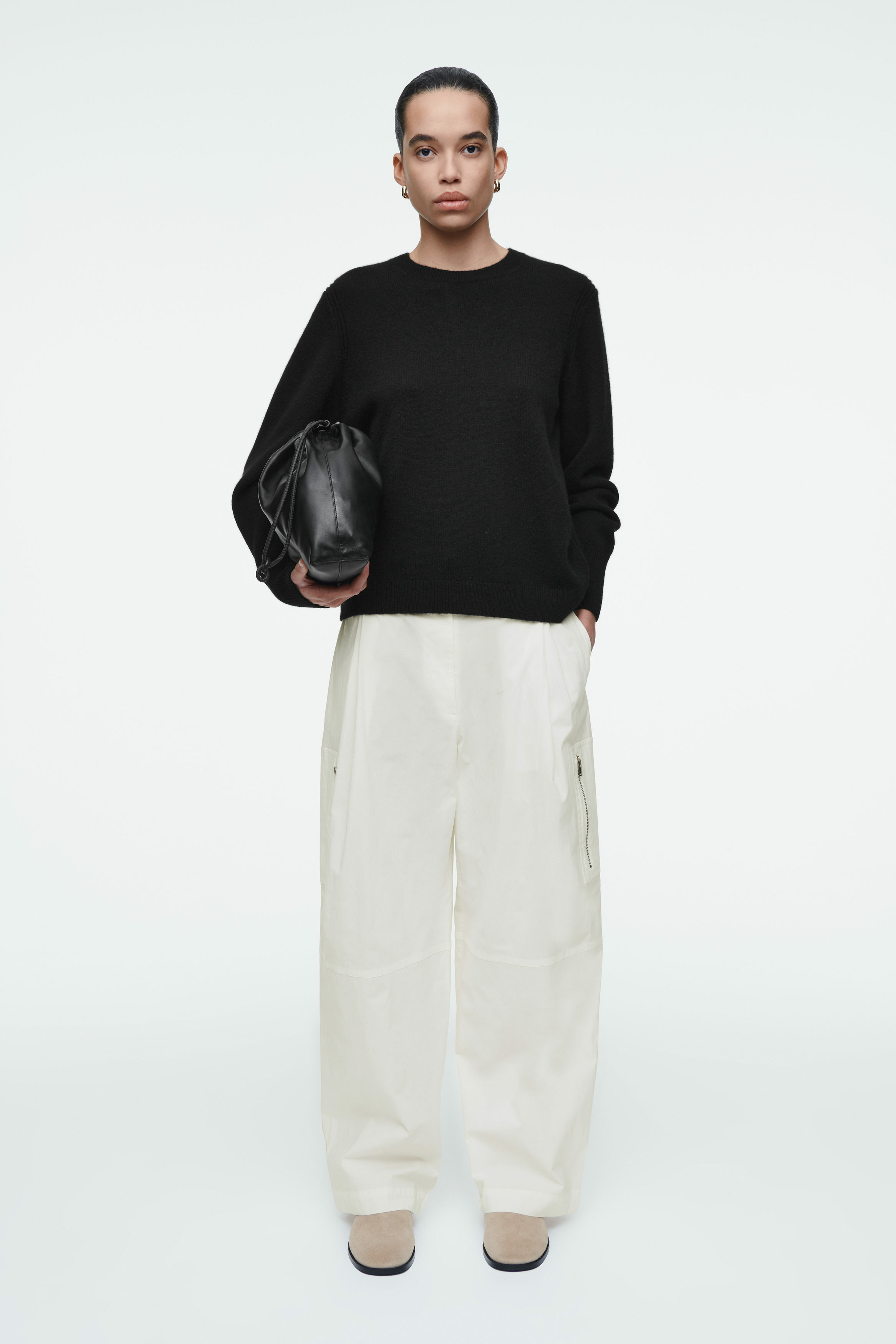 독특한 곡선 실루엣으로 완성된 배럴 레그 트라우저는 클래식 테일러링을 새롭게 재해석한 디자인입니다. 간결한 아이템과 매치해 밸런스를 맞추거나, 오버사이즈 탑과 함께 스타일링해 모던한 무드를 연출해 보세요.