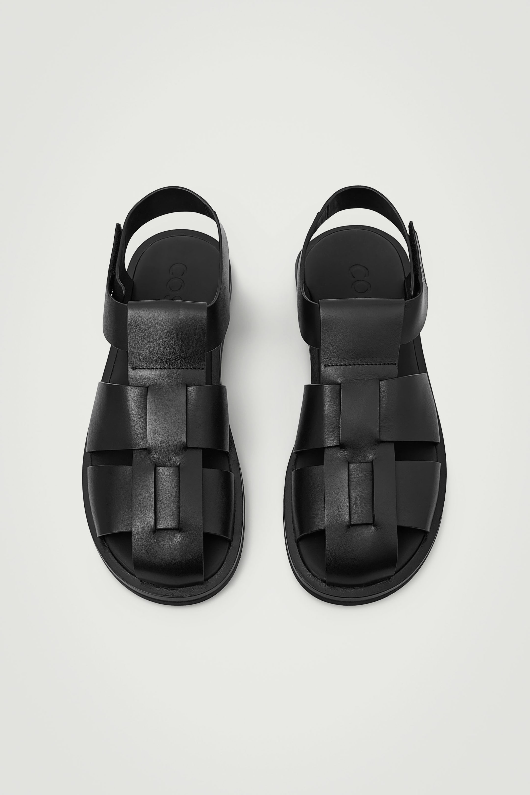 COS herrmodeteam inspirerades av en klassisk fiskarlook vid designen av de här sandalerna. De är gjorda av mjukt kromfritt läder och garvade i en djupsvart nyans med karaktäristisk ovandel som har breda sammanflätade spännen och en tydligt modern känsla. Bär dem med både avslappnade outfits och skräddade plagg.