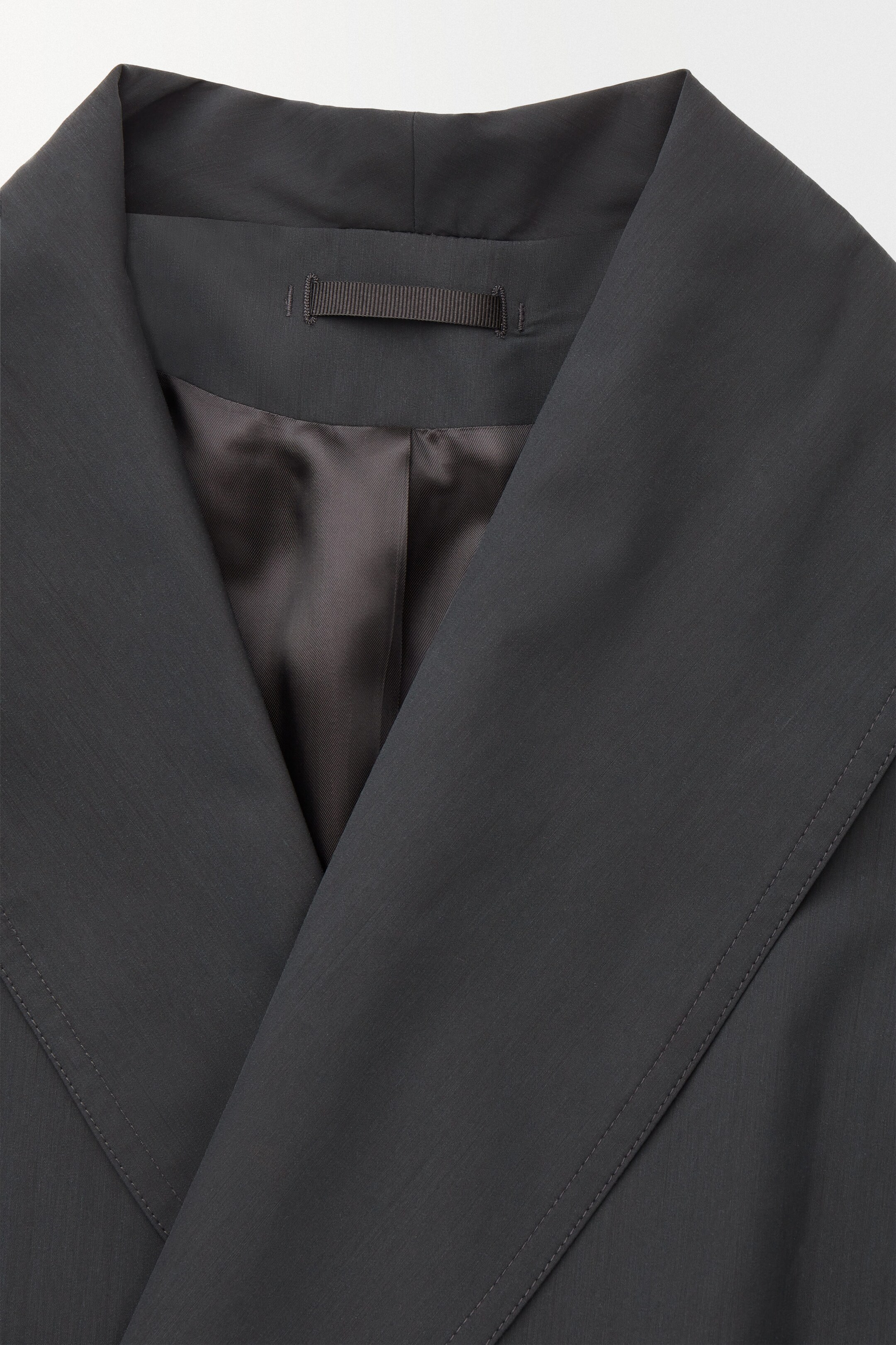 ATELIER-teamet har omtolkat den klassiska trenchcoaten till ett nyckelplagg i den nya höst-/vinterkollektionen för 2023. Den stilsäkra rocken har draperad sjalkrage i stället för det traditionella slaget, två fickor med lock och ett brett knytskärp i samma tyg – som kan tas av om du hellre vill. Dubbelknäppningen ger lös passform med gott om plats för eventuella stickade plagg under.