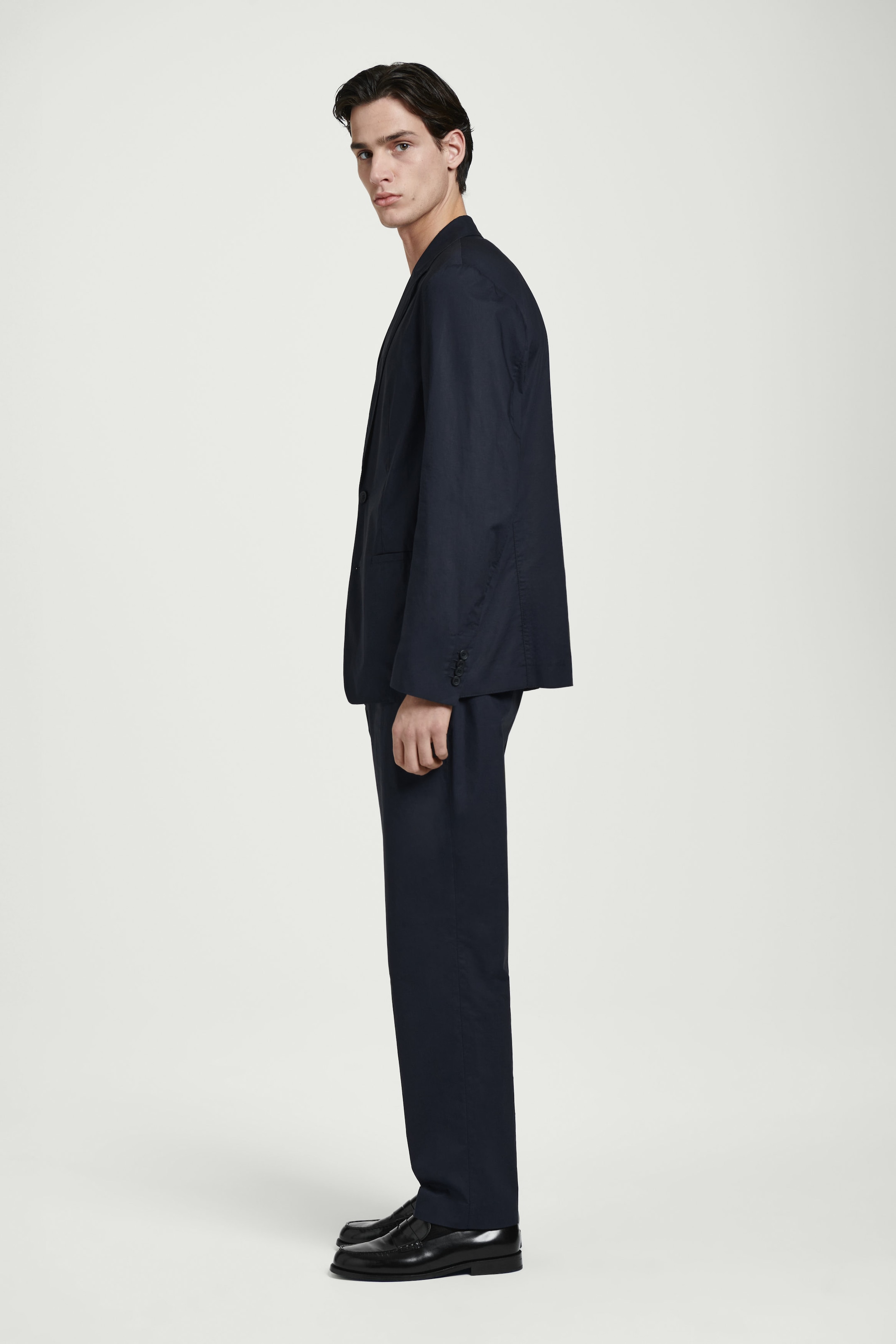 Den här enkelknäppta kavajen passar vid uppklädda tillfällen men kan också bäras ledigt i mer avslappnade sammanhang. Tillverkad av mjuk Pima-bomull och skräddad i vår lediga passform med välvda ärmar för en ofodrad finish. Kavajen har passpoalfickor, manschetter och sprund baktill. Styla med de matchande byxorna.