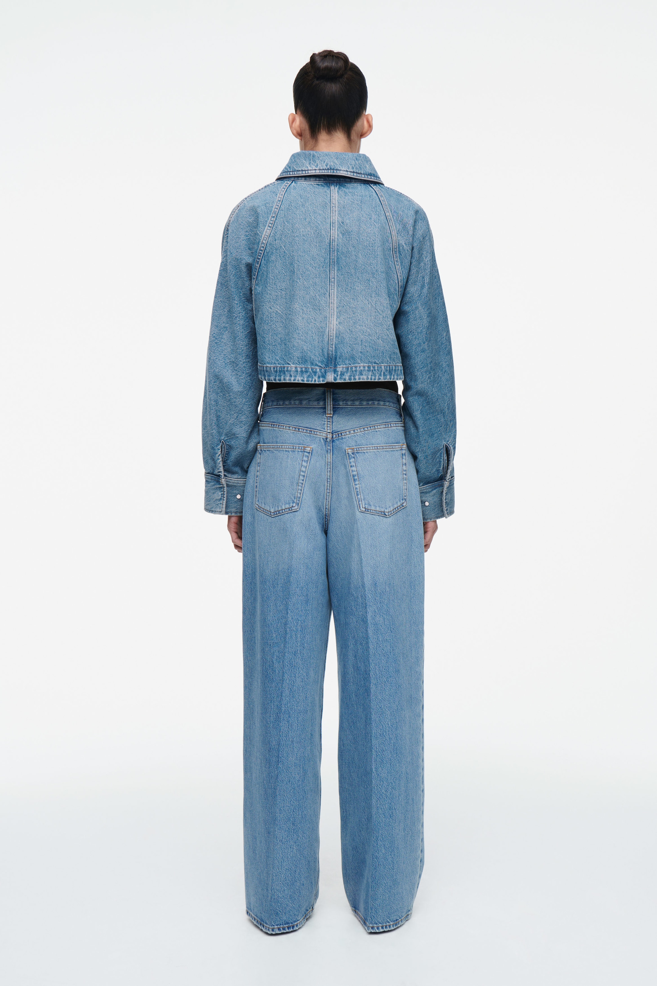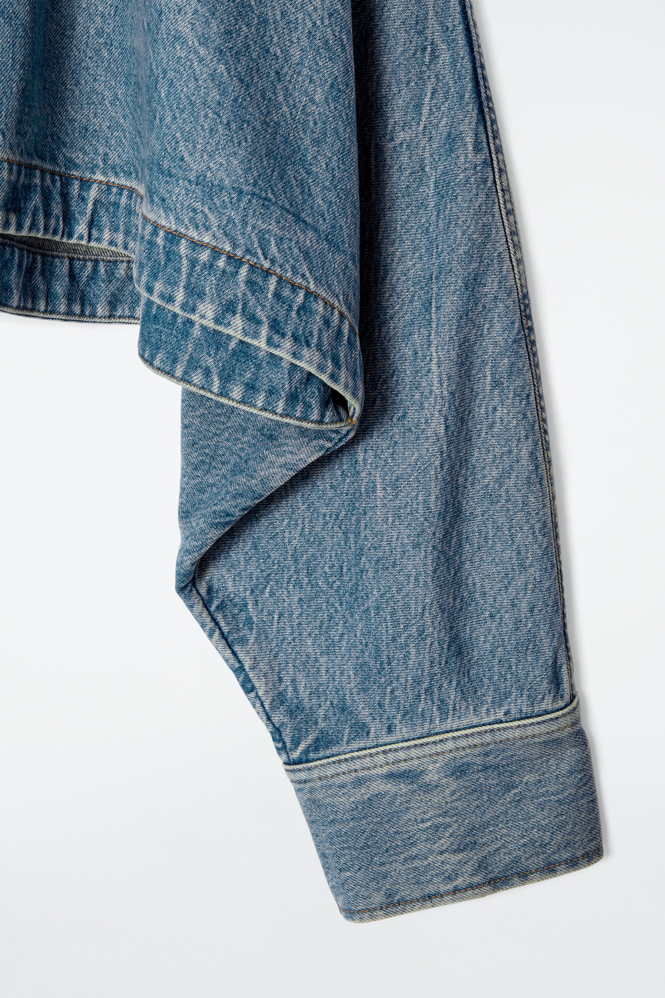 Den här moderna hybridjackan är ett idealiskt säsongsöverskridande lager. Tillverkad av denim med ett ultracroppat snitt som erbjuder oändliga stylingmöjligheter. Vikta manschetter och en dold knappslå ger en stilren finish, medan de välvda raglanärmarna ger silhuetten extra överdrivna proportioner.