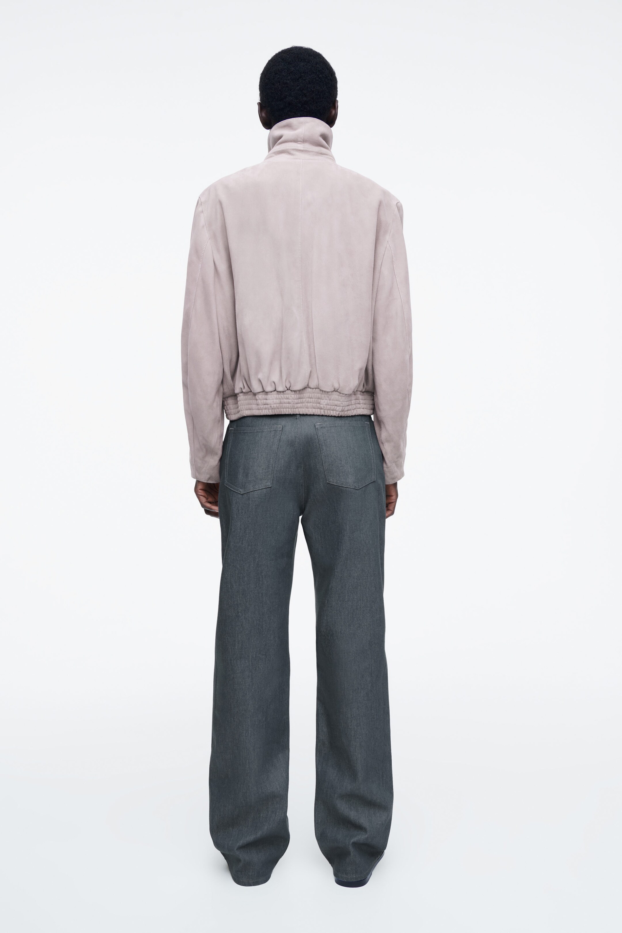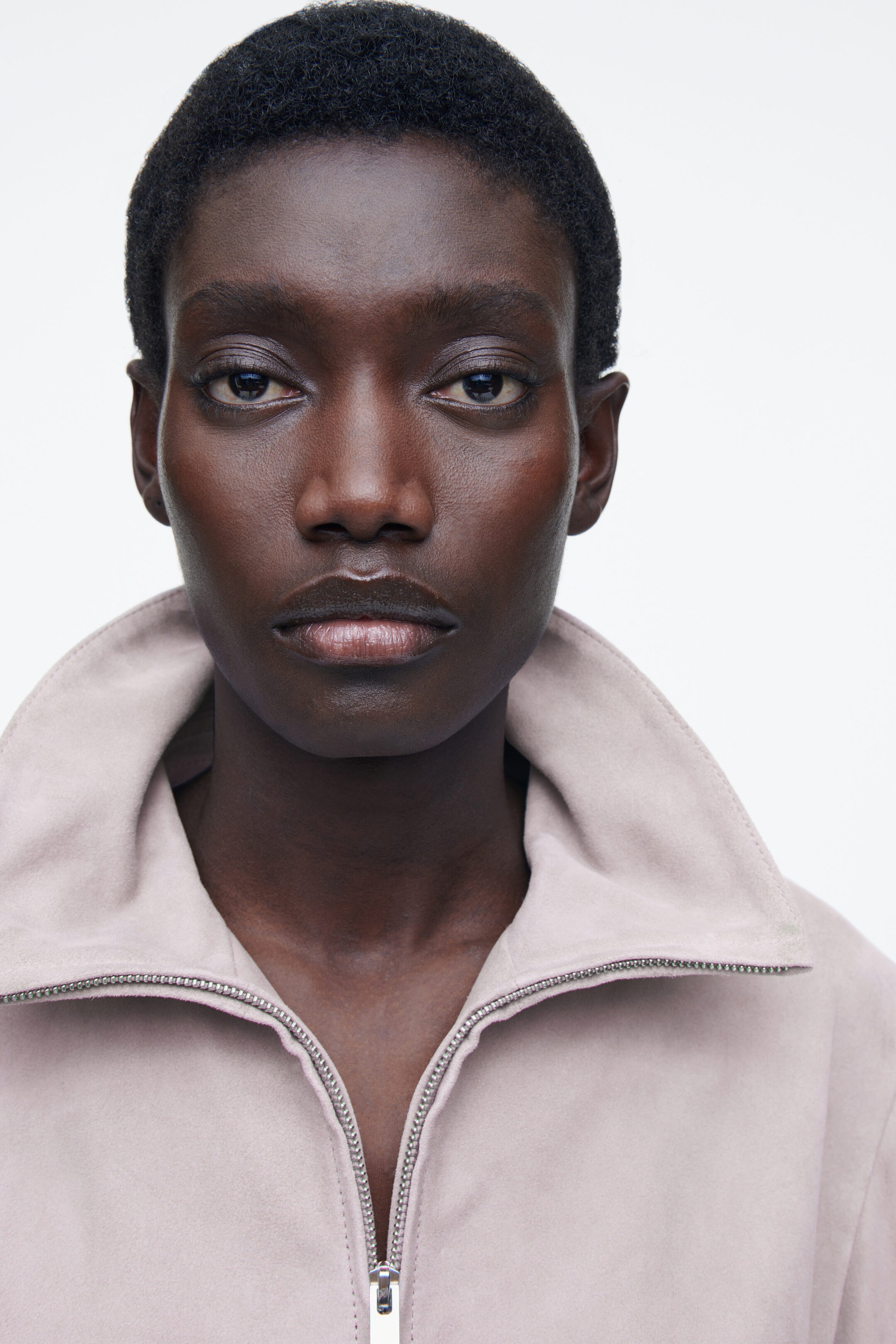 Den här säsongen introducerar COS designteam en fräsch palett med pasteller för att ge tidlösa plagg lite extra energi. Denna bomberjacka är tillverkad av premium mocka i en behaglig, syrenfärgad nyans. Jackan har passpoalfickor och resår nedtill som ger en smickrande passform i midjan. Den dubbla dragkedjan låter dig leka med proportioner – styla kragen högt eller nedvikt för en klassisk look.