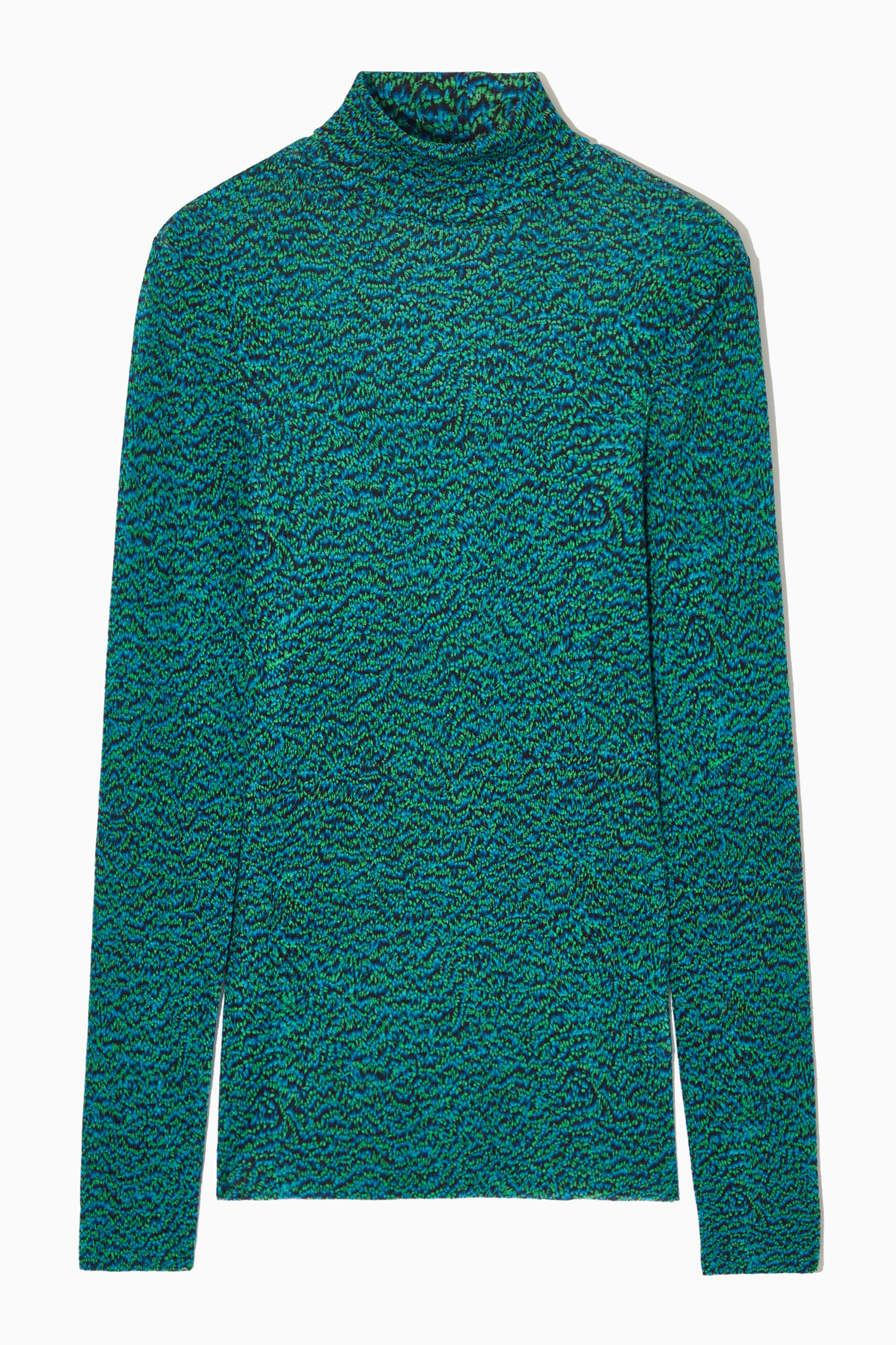 Det här klassiska plagget med ett abstrakt, blommigt mönster är gjort av ren merinoull och har en hög polokrage. Passformen är stilrent smal, vilket passar perfekt med flera lager under vår och höst.