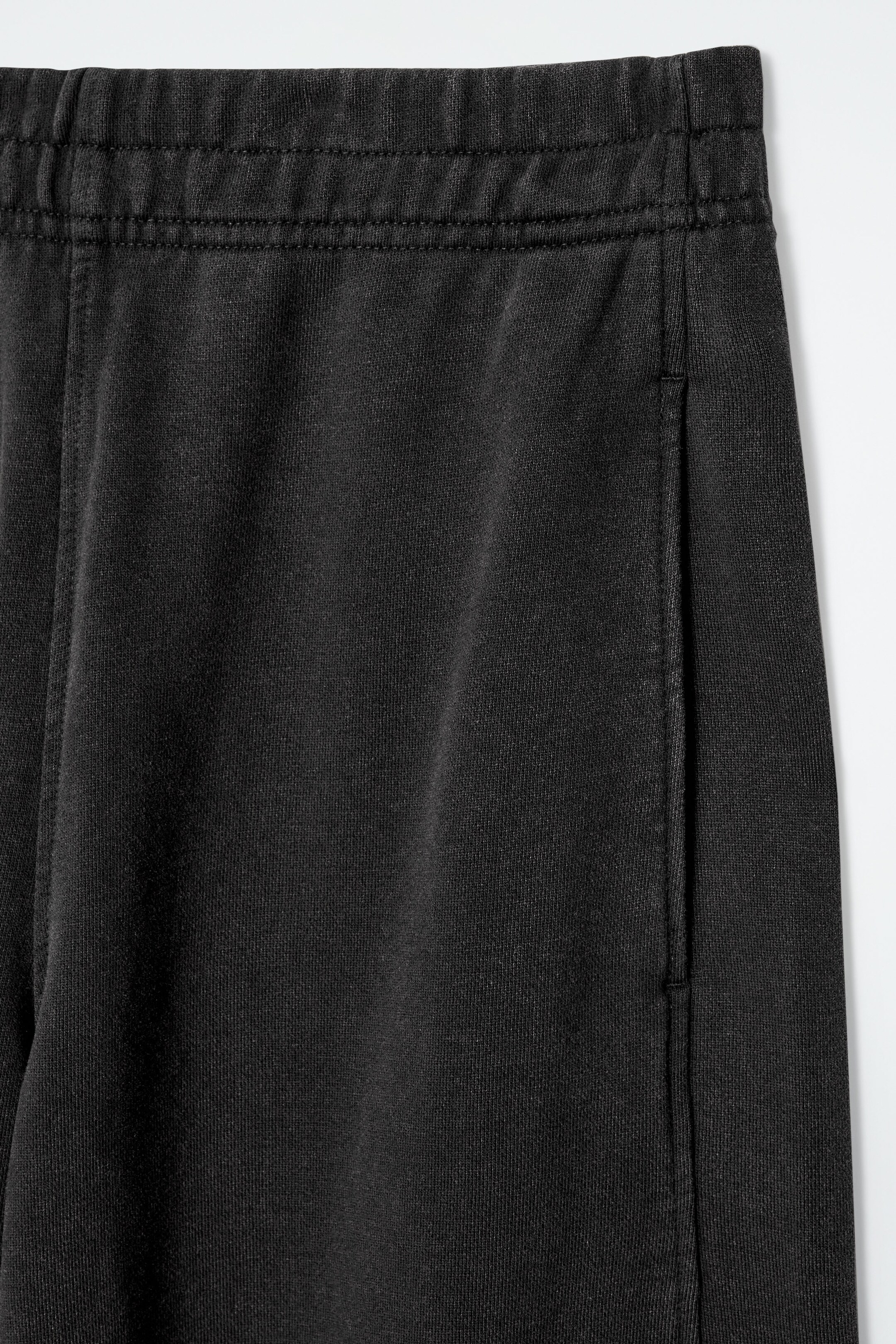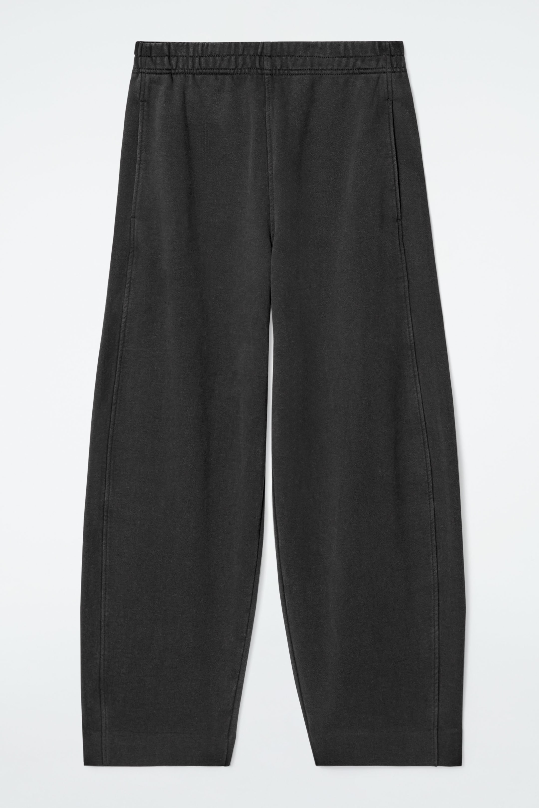 Svarta joggingbyxor som får dig att längta till ledigheten. Designen tar avstamp i klassisk leisurewear och är sydda i mjuk jersey med ekologisk och återvunnen bomull. Bekväm modell med resårlinning och barrel-leg-snitt. Bär byxorna med den matchande sweatshirten.
