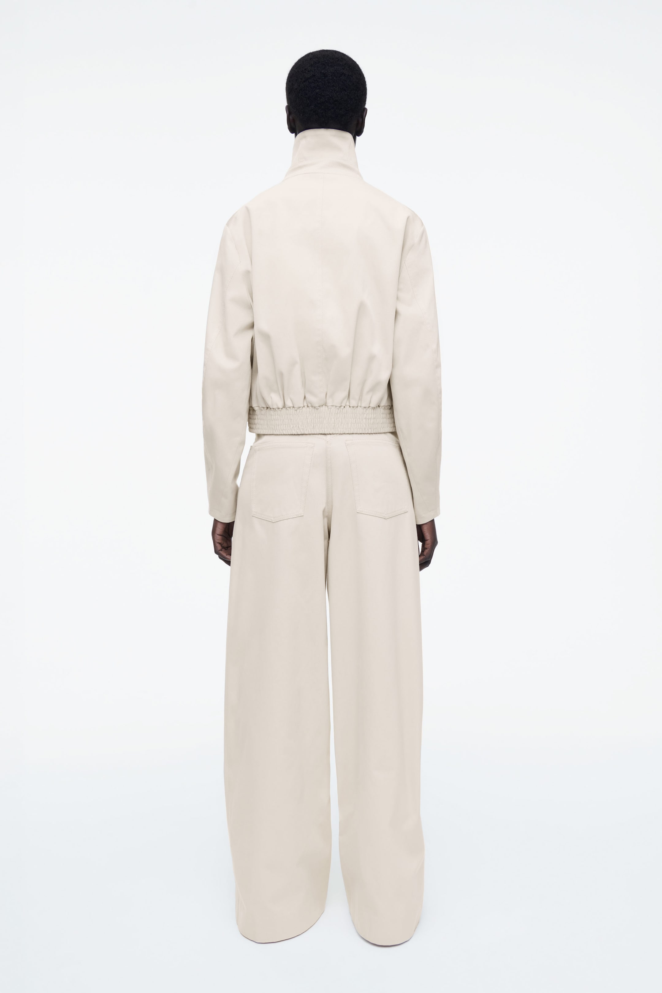 Dessa byxor balanserar perfekt mellan elegans och avslappnad stil. De är tillverkade av ren bomull och har en vid silhuett med femficksdesign, bälteshällor och färgmatchade sömmar som nickar till klassisk denim. Linningen stängs med en hake och dragkedja för en ren och sofistikerad finish.